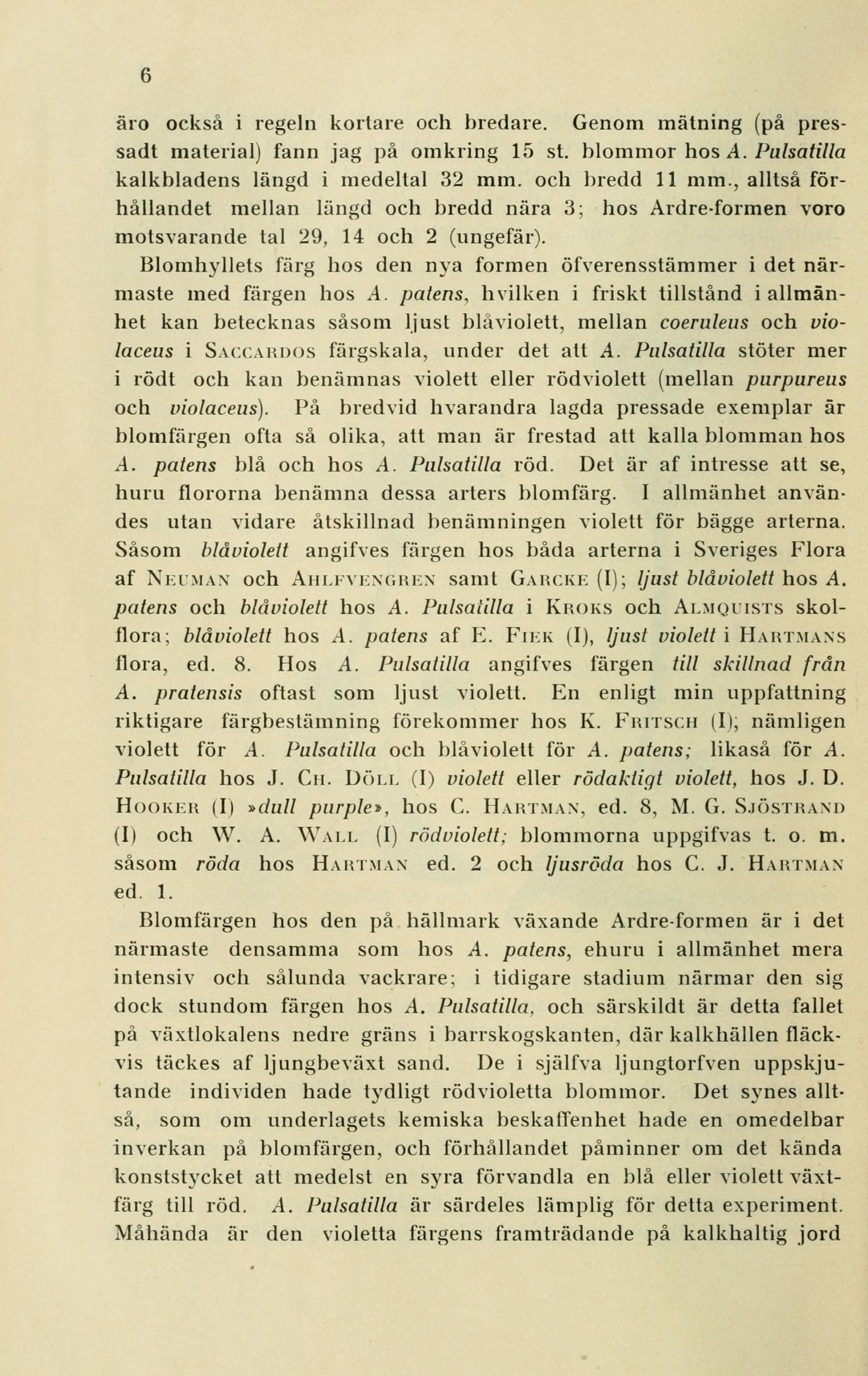 Pulsalilla hos J. Ch. Doll (I) violett eller rödaktigt violett, hos J. D.