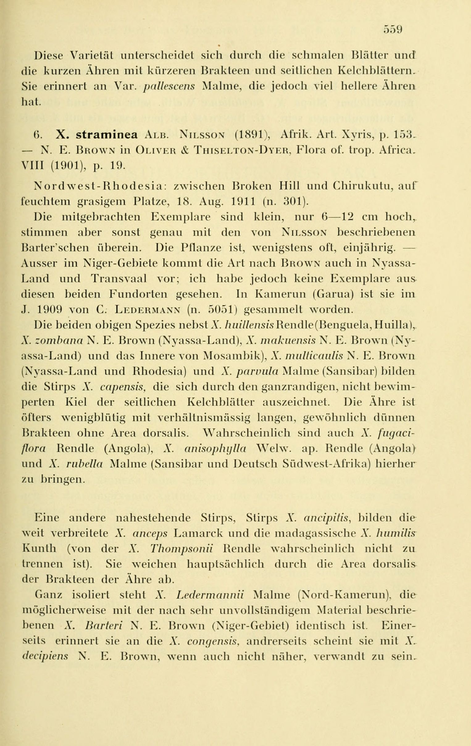 6. X. straminea Alb. Nilsson (1891), Afrik. Art. Xvris, p. 153.