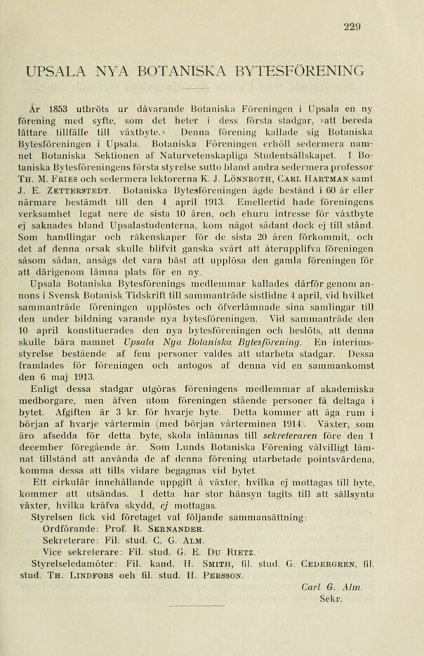 Upsala Botaniska Bytesförenings medlemmar kallades därför genom