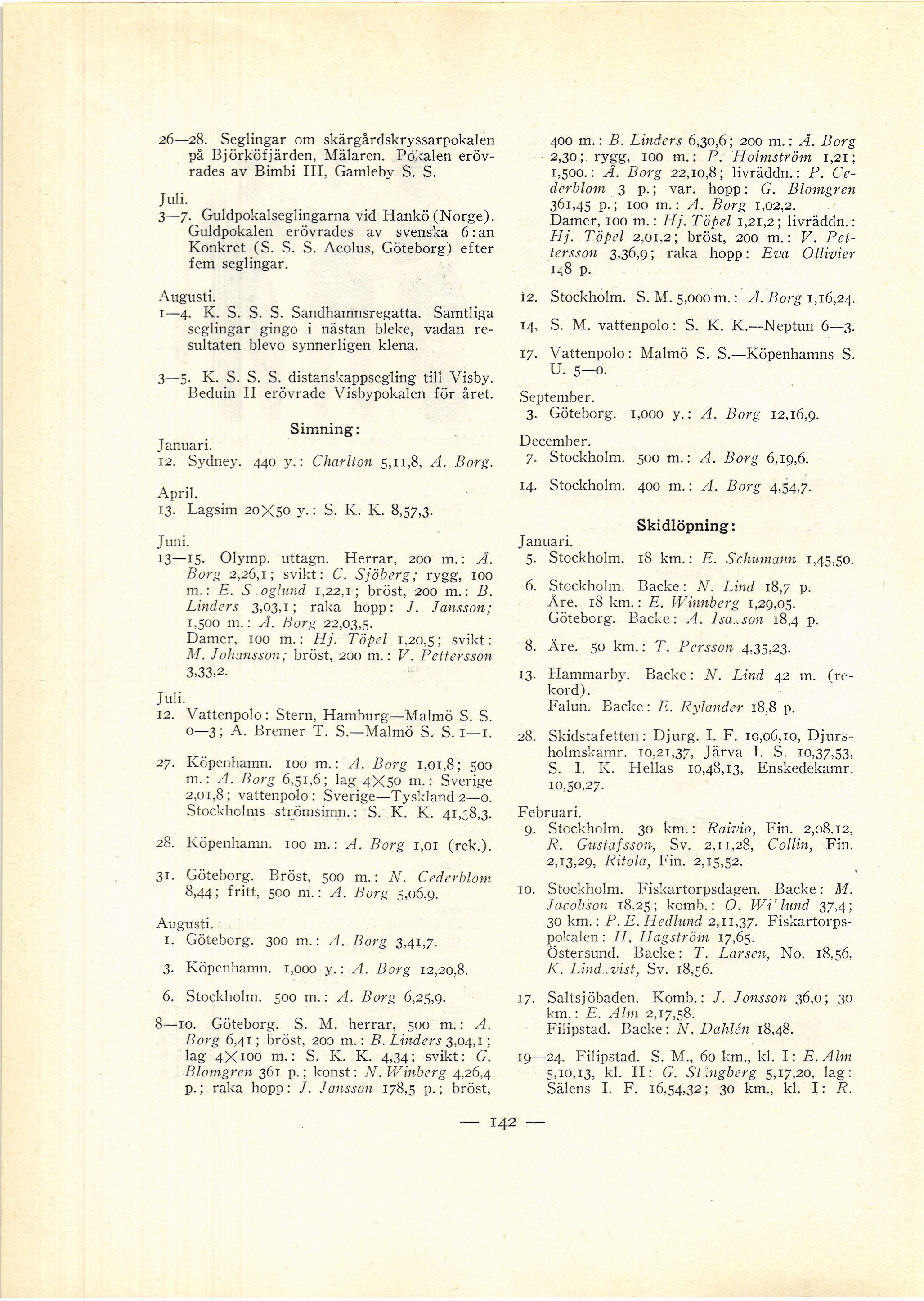 14. Stockholm. 400 m.: A. Borg 4,54,7.