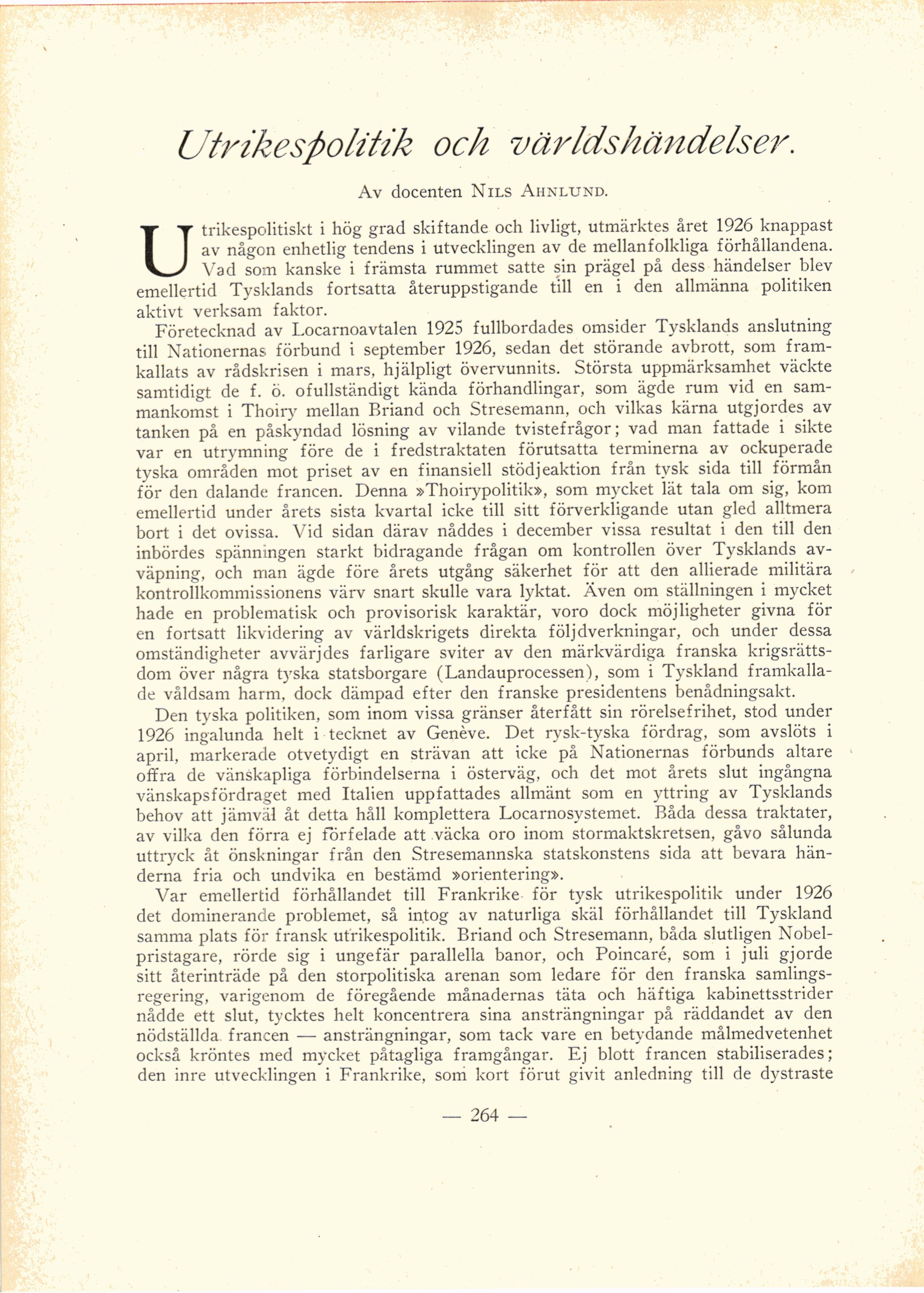 Full resolution (JPEG) - On this page / på denna sida - Utrikespolitik och världshändelser. Av docenten Nils Ahnlund