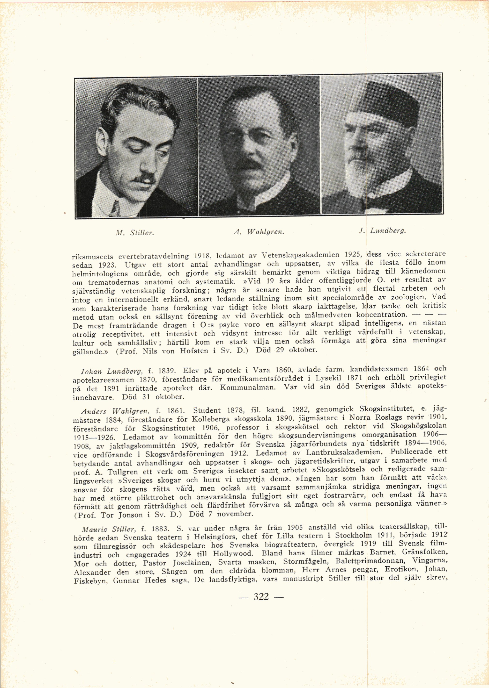 prof. A. Tullgren ett verk om Sveriges insekter samt arbetet »Skogsskötsel» och redigerade