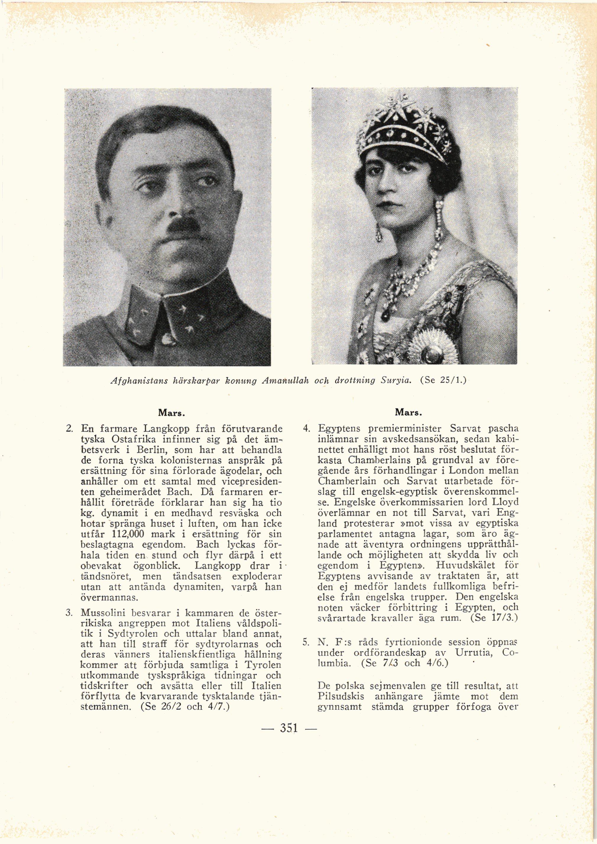 Afghanistans härskarpar konung Amanullah och drottning Suryia. (Se 25/1.)