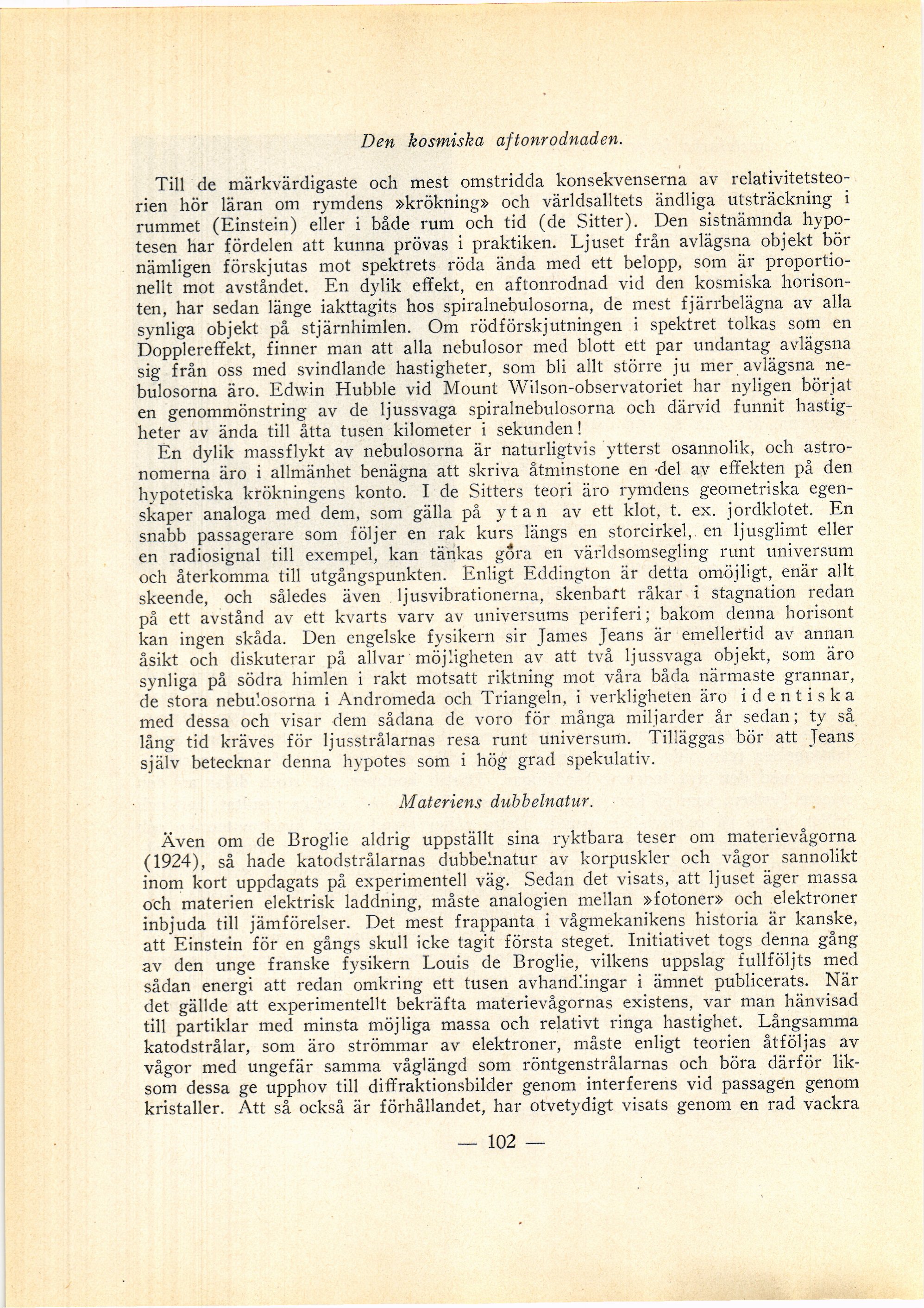 ne-bulosorna äro. Edwin Hubble vid Mount Wilson-observatoriet har nyligen börjat