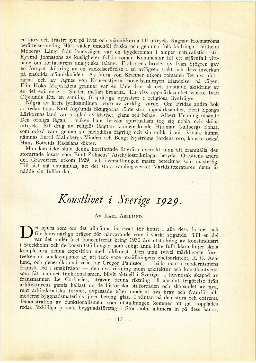 Full resolution (JPEG) - On this page / på denna sida - Litteraturen 1929 - Konstlivet i Sverige 1929. Av Karl Asplund