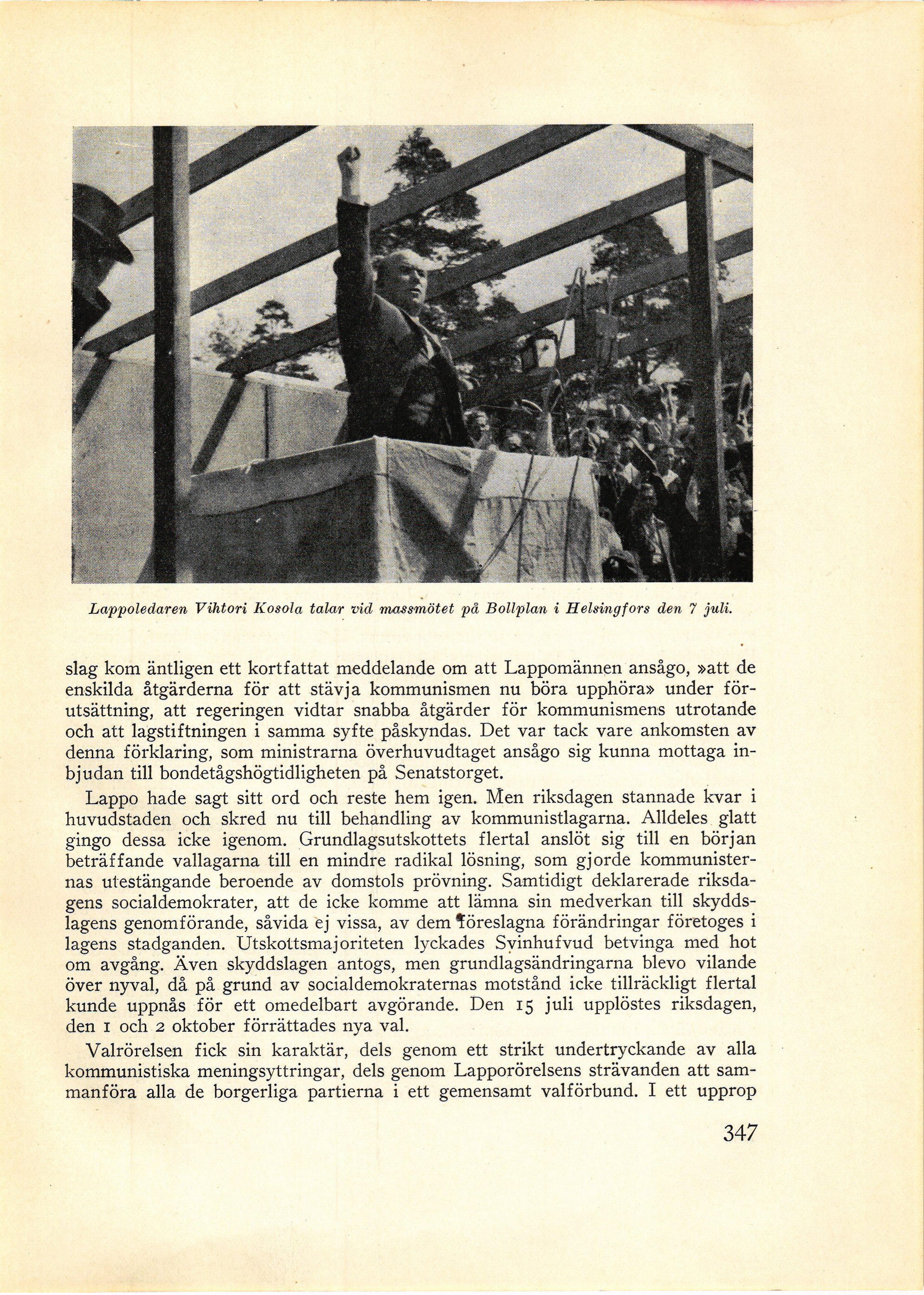 Lappoledaren Vihtori Kosola talar vid mmsmötet pä Bollplan i Helsingfors den 7 juli.