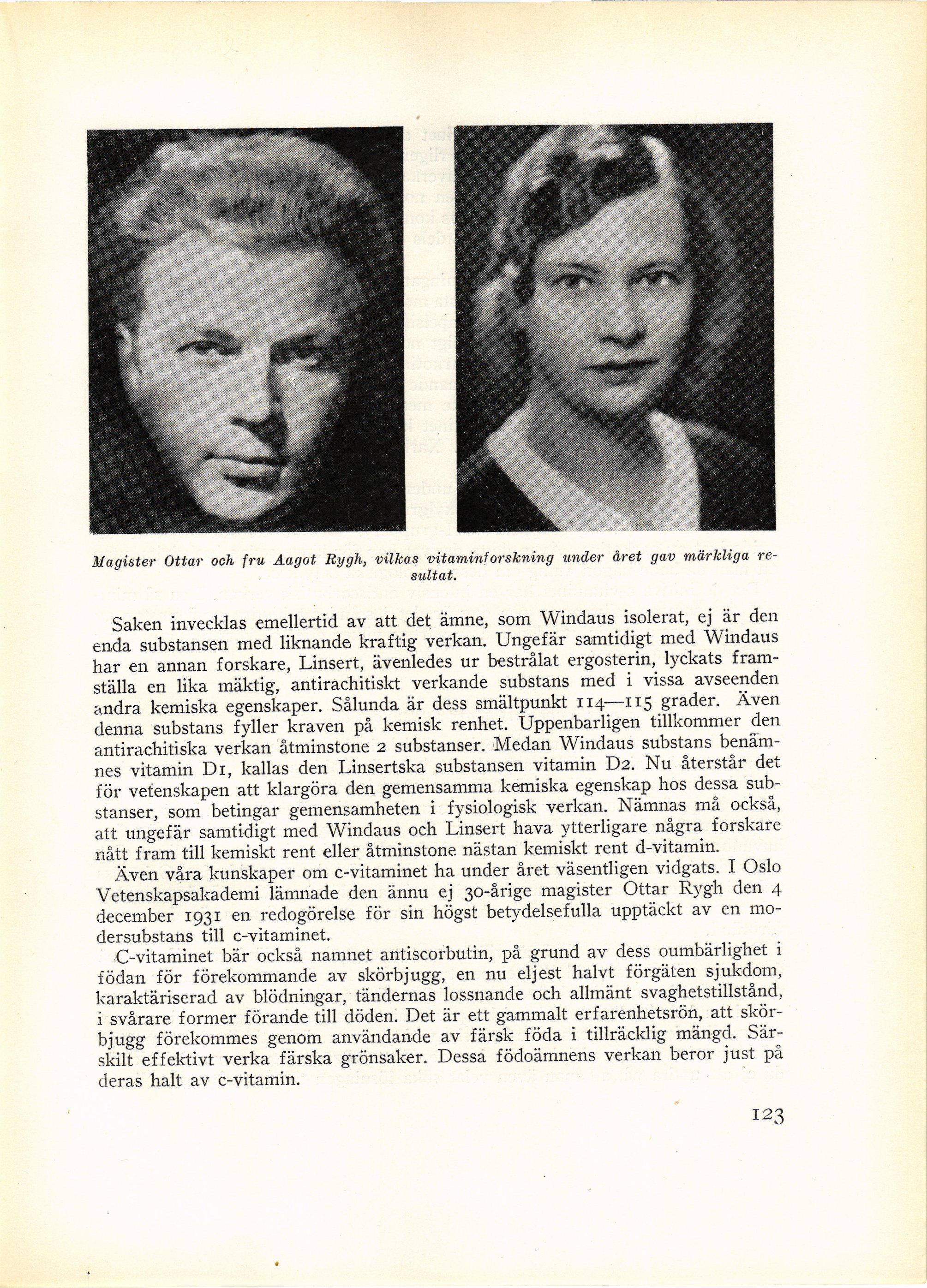 Magister Ottar och fru Aagot Rygh, vilkas vitaminforskning under året gav märkliga