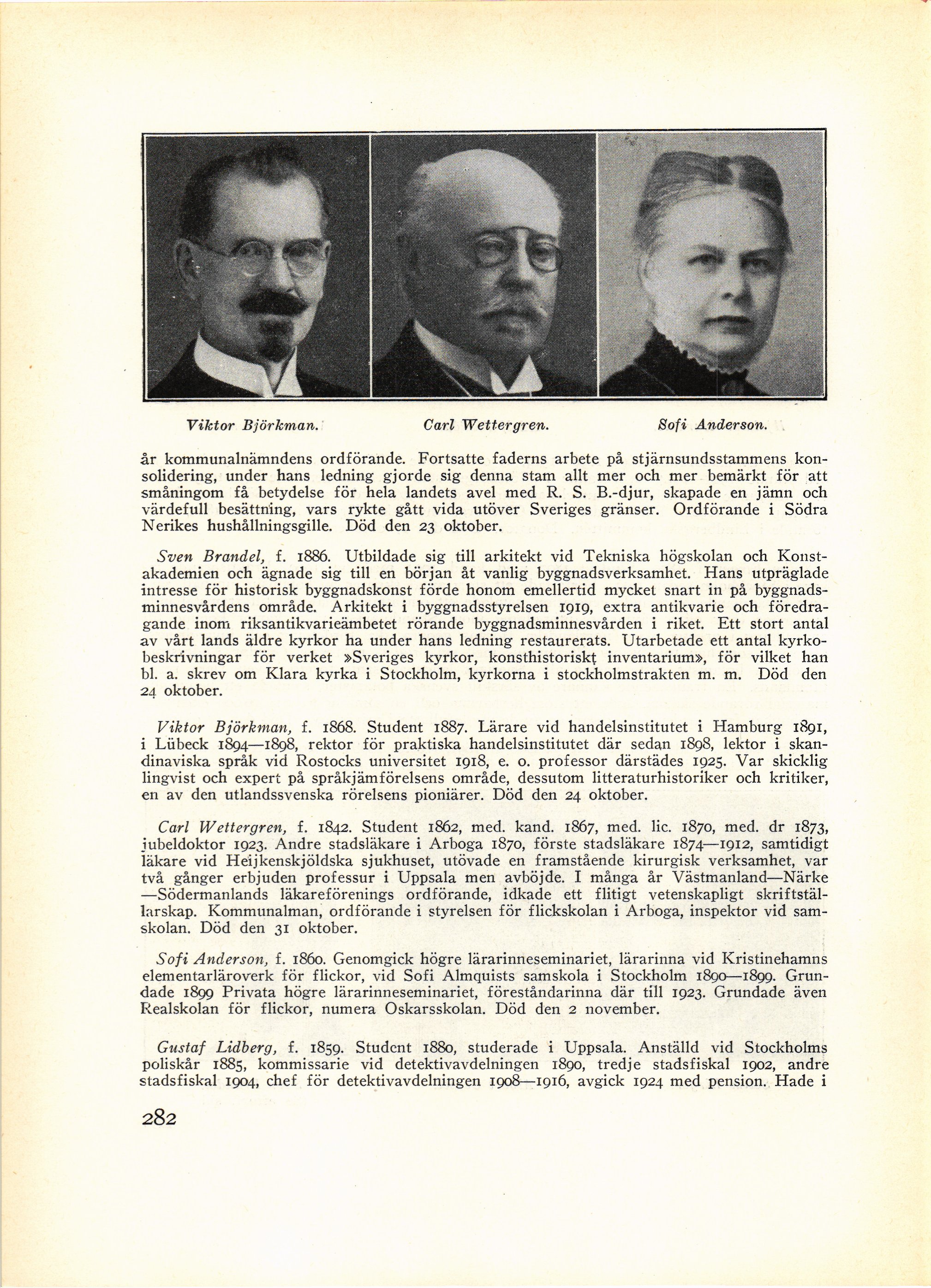 bl. a. skrev om Klara kyrka i Stockholm, kyrkorna i stockholmstrakten m. m. Död den