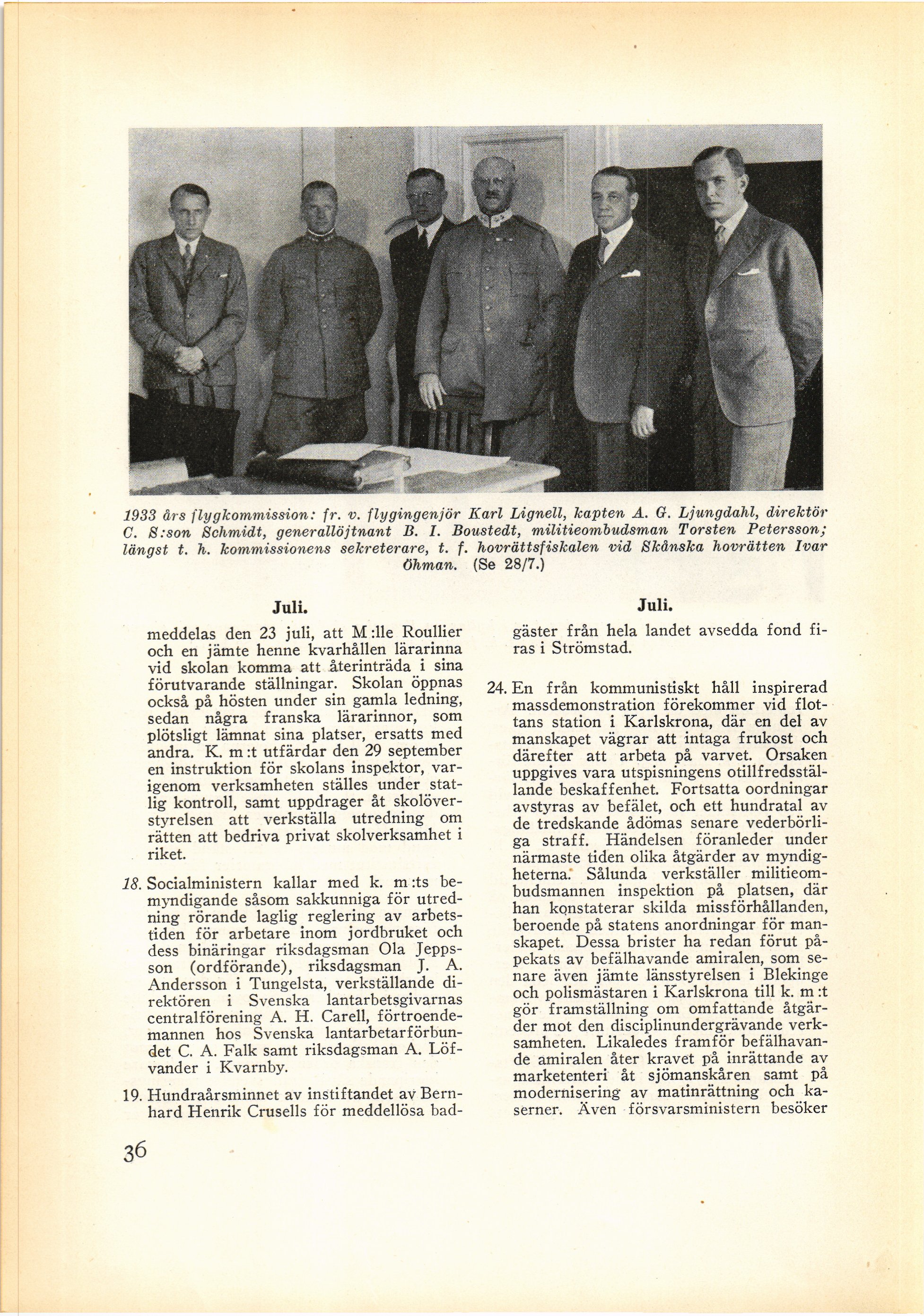 1933 års fly g kommission: fr. v. flygingenjör Karl Lignell, kapten A. G. Ljungdahl, direktör