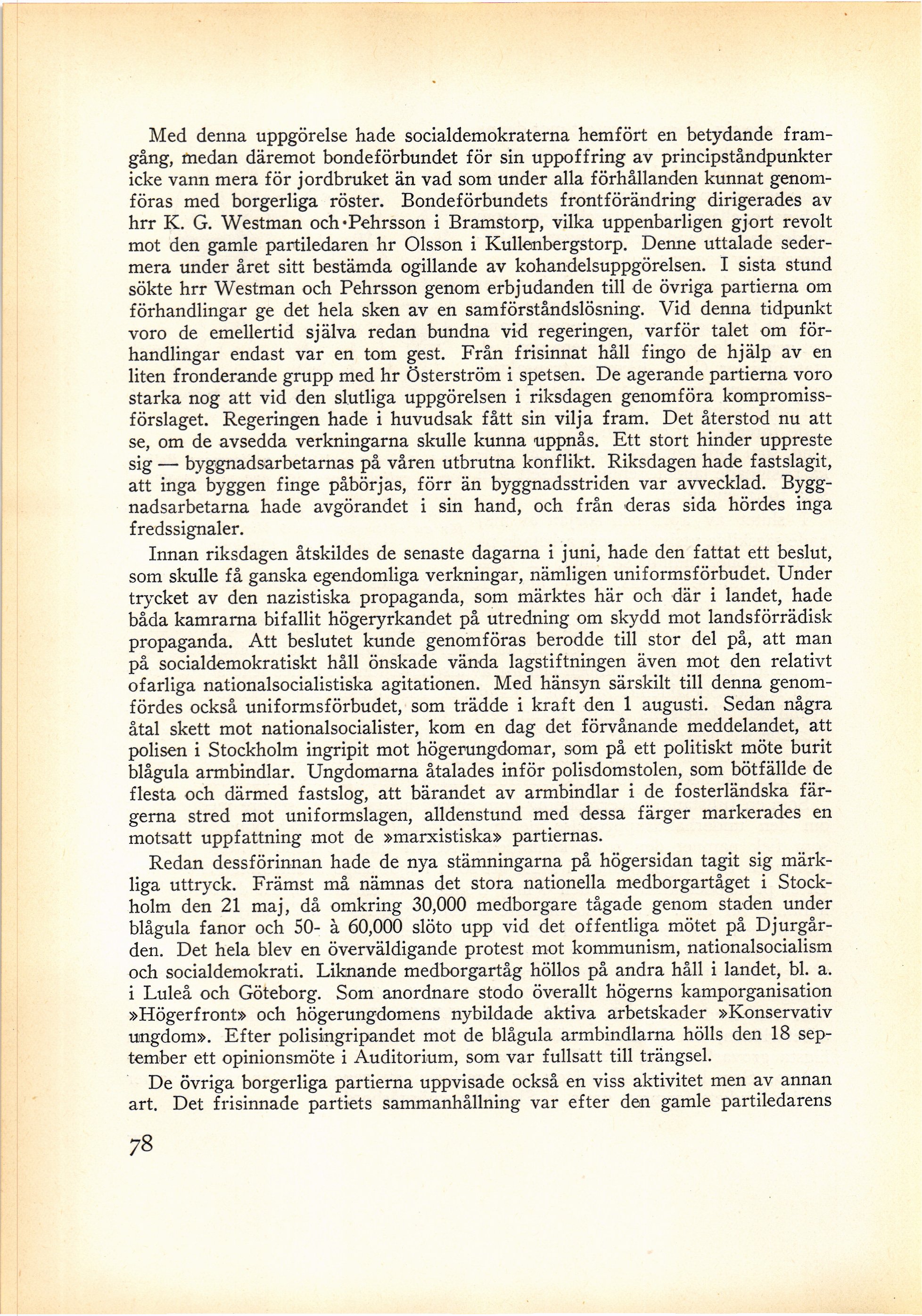 mot den gamle partiledaren hr Olsson i Kullenbergstorp. Denne uttalade
