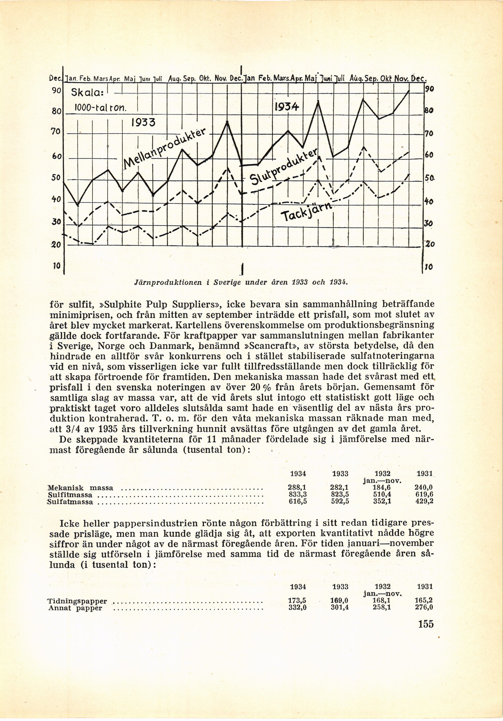 Järnproduktionen i Sverige under åren 1933 och 193U.
