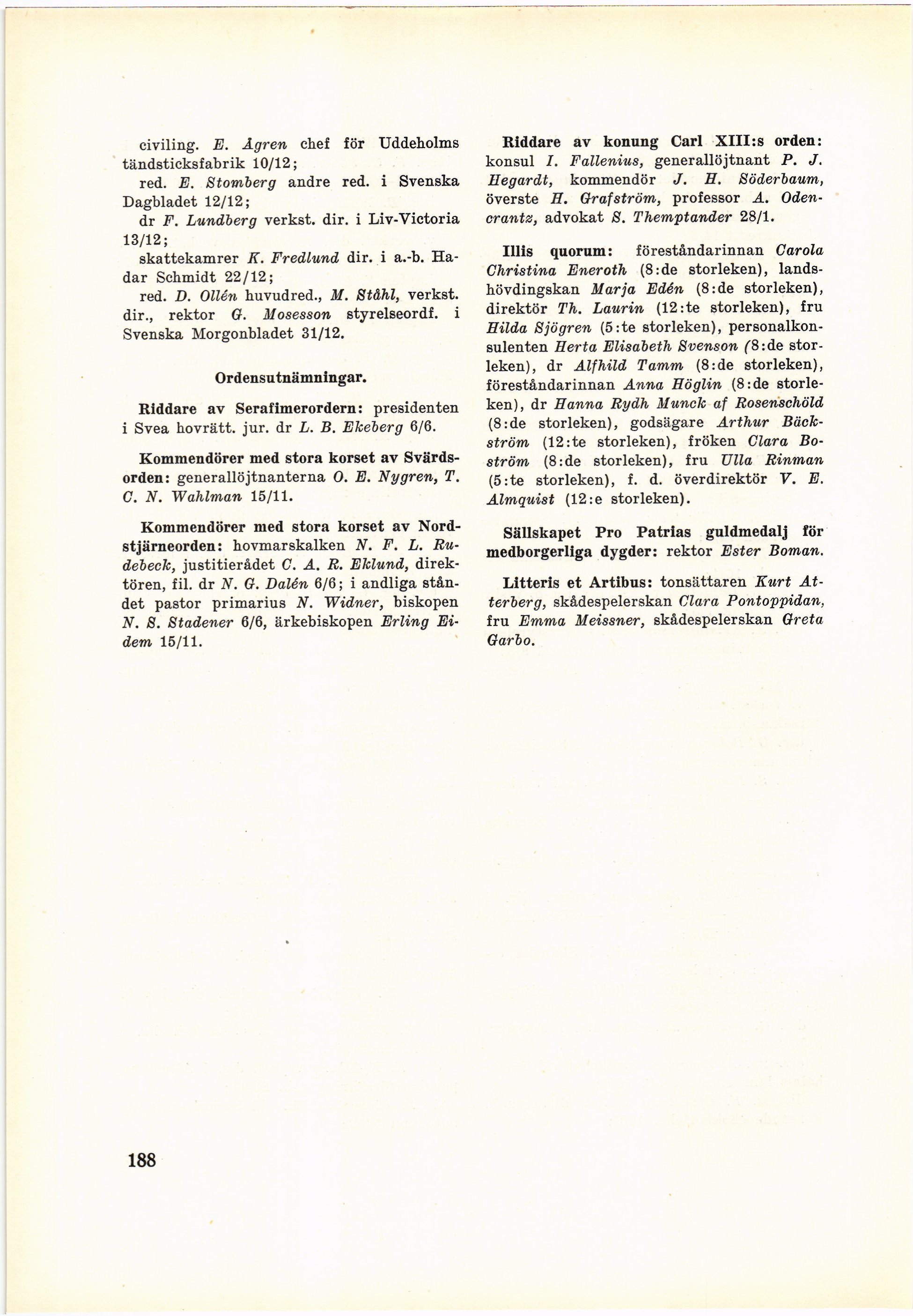 Full resolution (JPEG) - On this page / på denna sida - Viktigare utnämningar 1936 - I enskild tjänst - Ordensutnämningar
