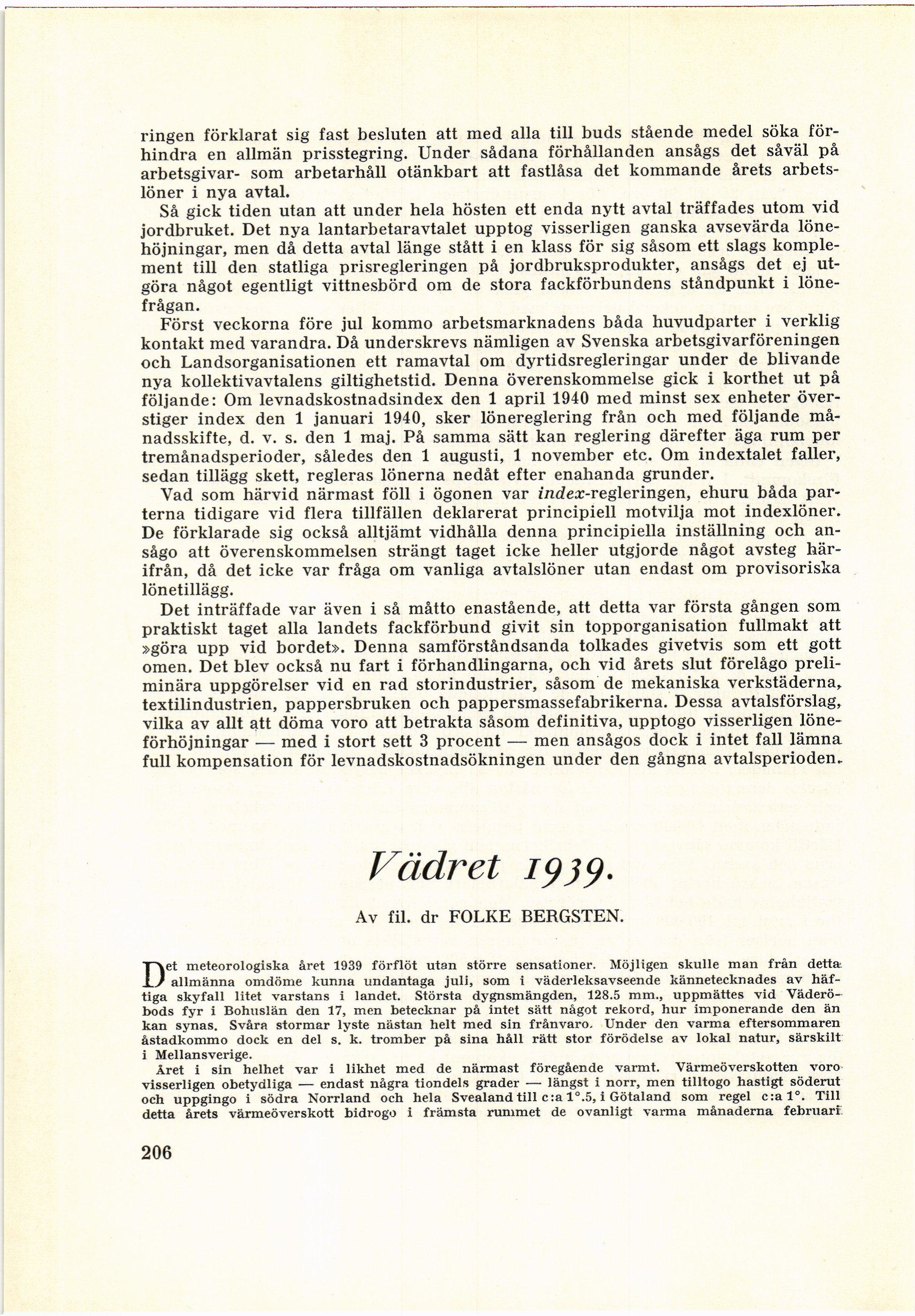 Full resolution (JPEG) - On this page / på denna sida - Avtalsrörlser under 1939. Av redaktör Th. Swedberg - Vädret 1939. Av fil. dr Folke Bergsten