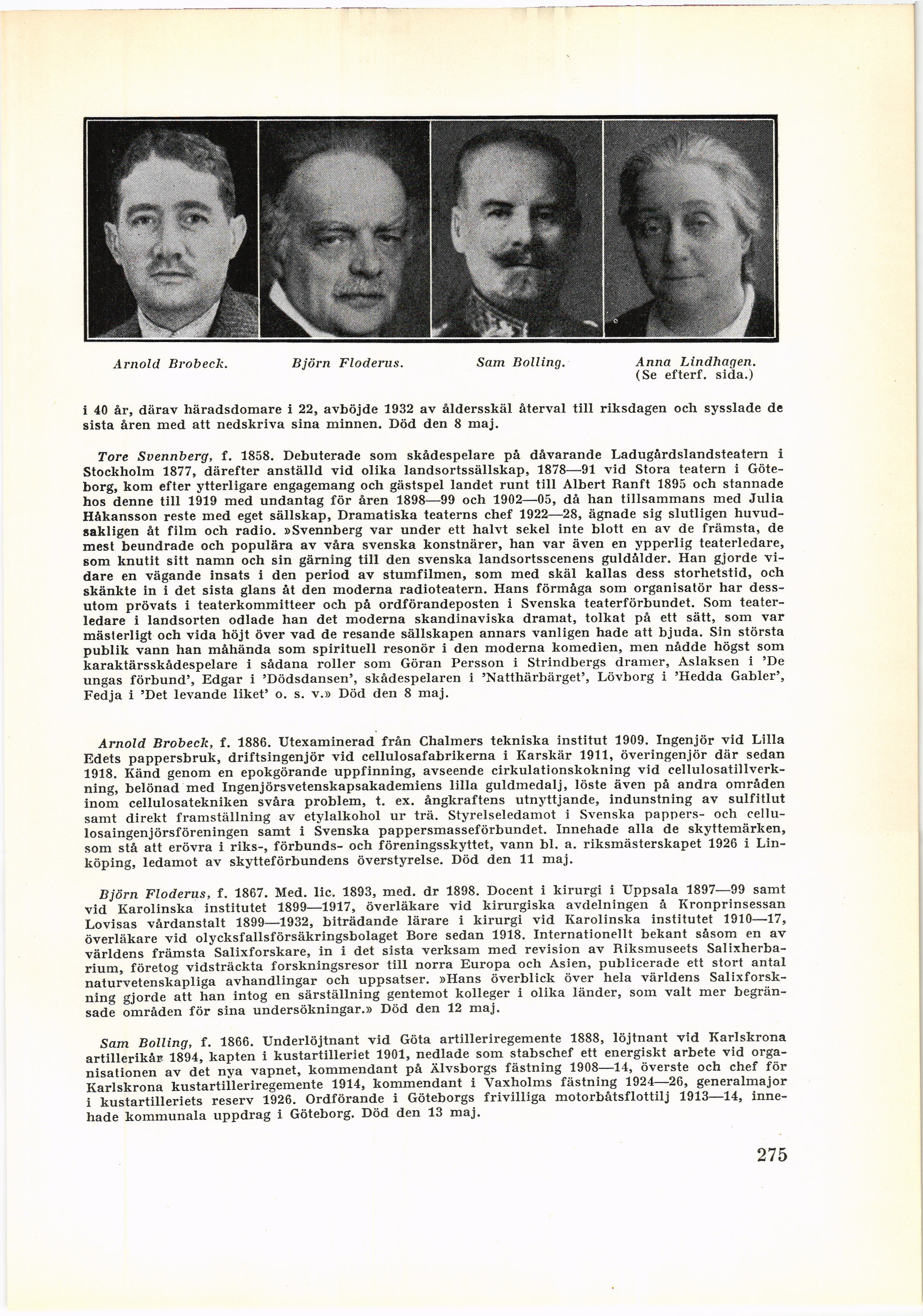 Arnold Brobeck. Björn Floderus. Sam Bolling. Anna Lindhagen.