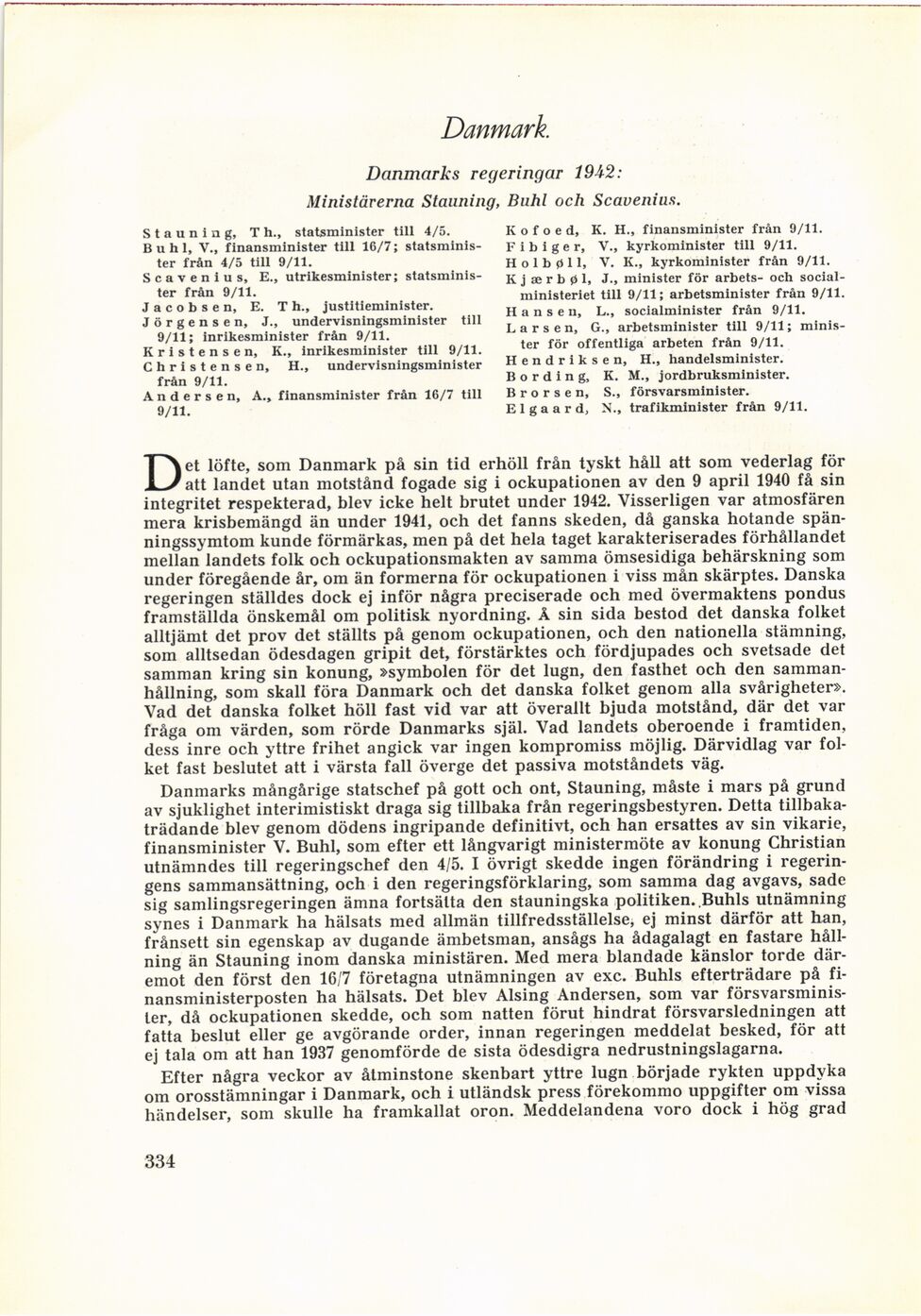 Danmarks regeringar 1942: