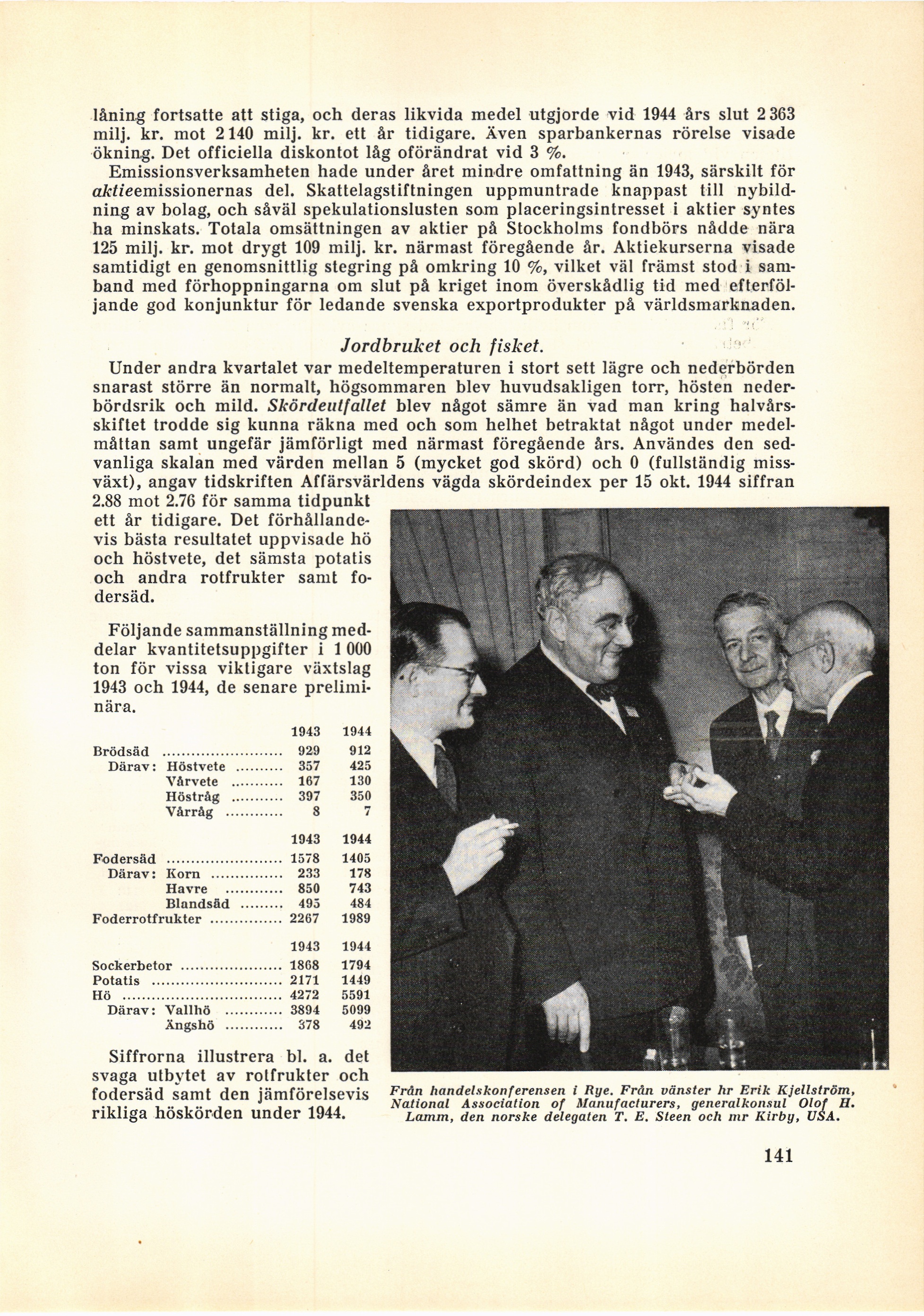 Full resolution (JPEG) - On this page / på denna sida - Ekonomisk översikt 1944. Av förste aktuarien Viking Källström - Prisnivån, penning- och kapitalmarknaden - Jordbruket och fisket