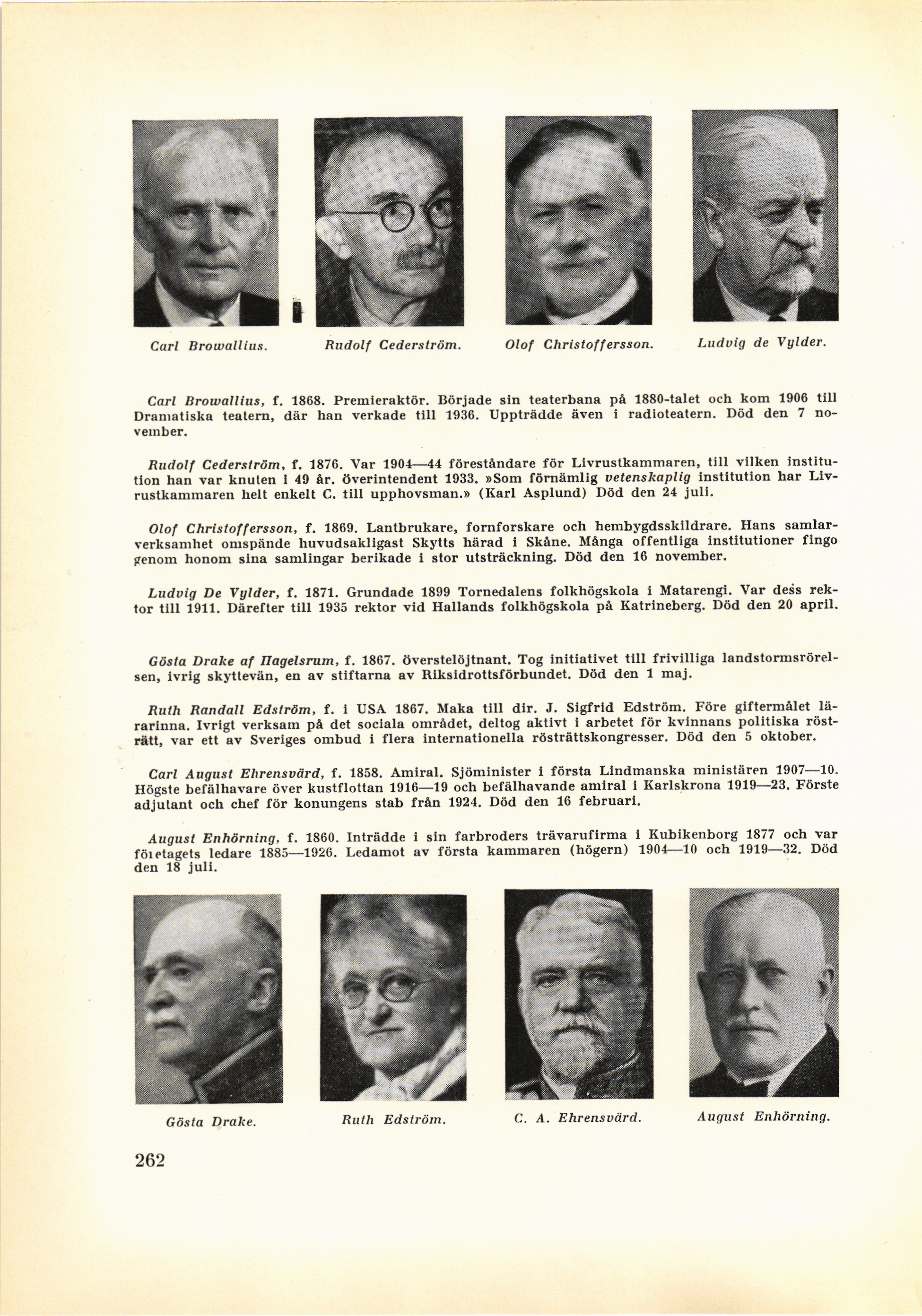 Gösta Drake. Ruth Edström. C. A. Ehrensvärd. August Enhörning.