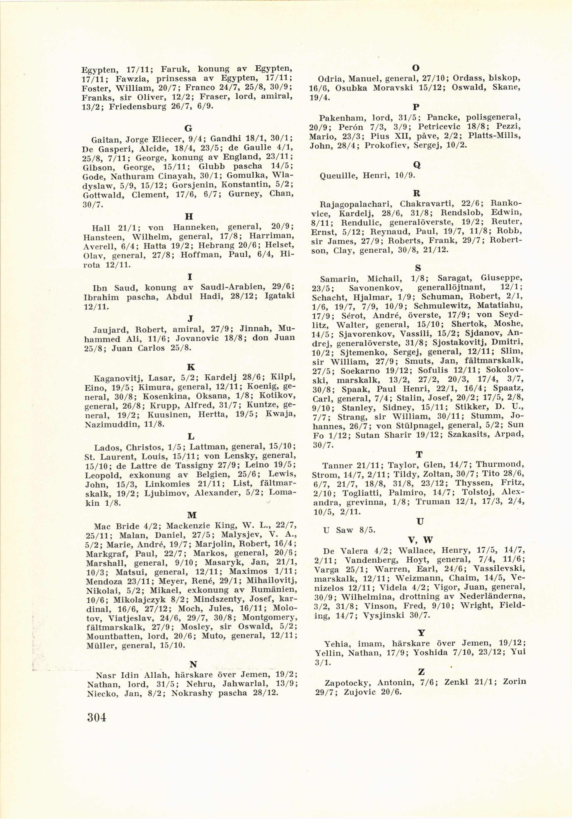Marshall, general, 9/10; Masaryk, Jan, 21/1,