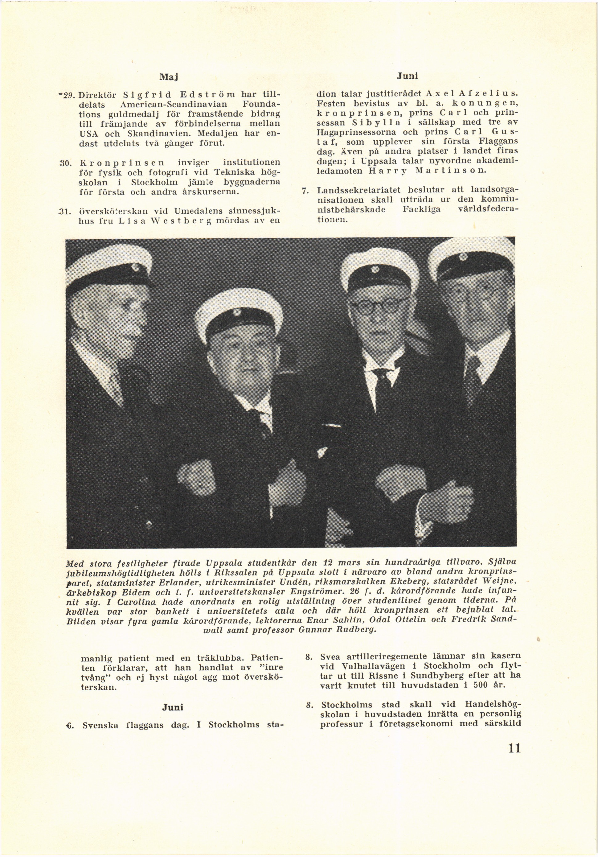 kronprinsparet, statsminister Erlander, utrikesminister Undèn, riksmarskalken Ekeberg, statsrådet Weijne,