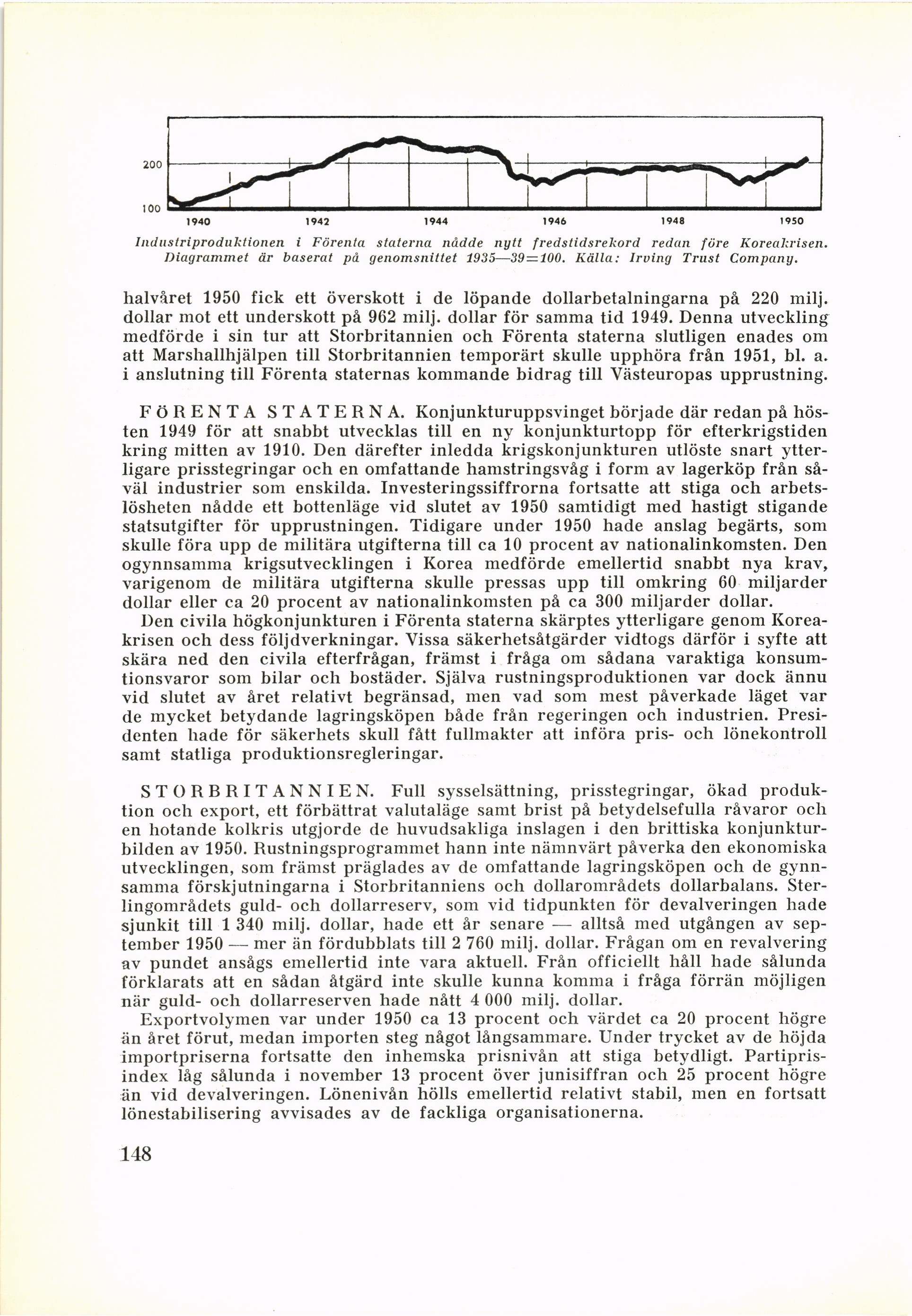 Diagrammet är baserat på genomsnittet 1935—39=100. Källa: Irving Trust Company.