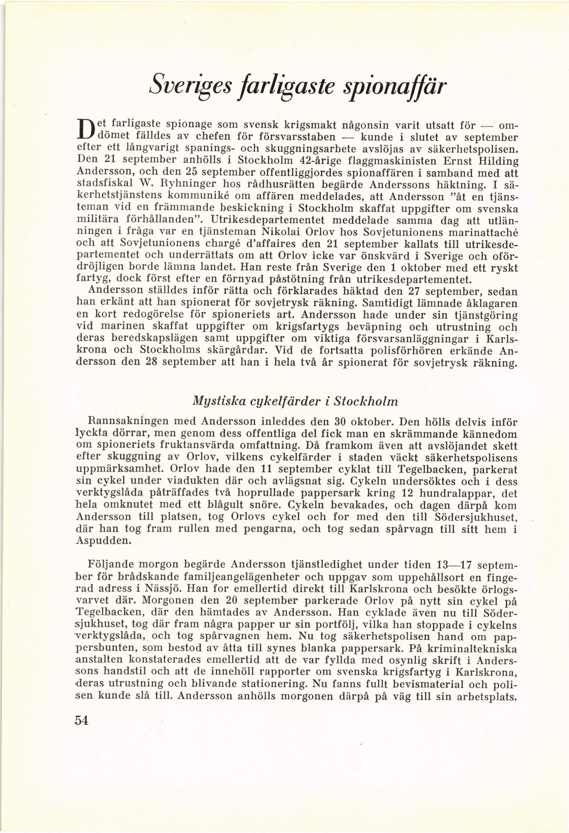 en kort redogörelse för spioneriets art. Andersson hade under sin tjänstgöring