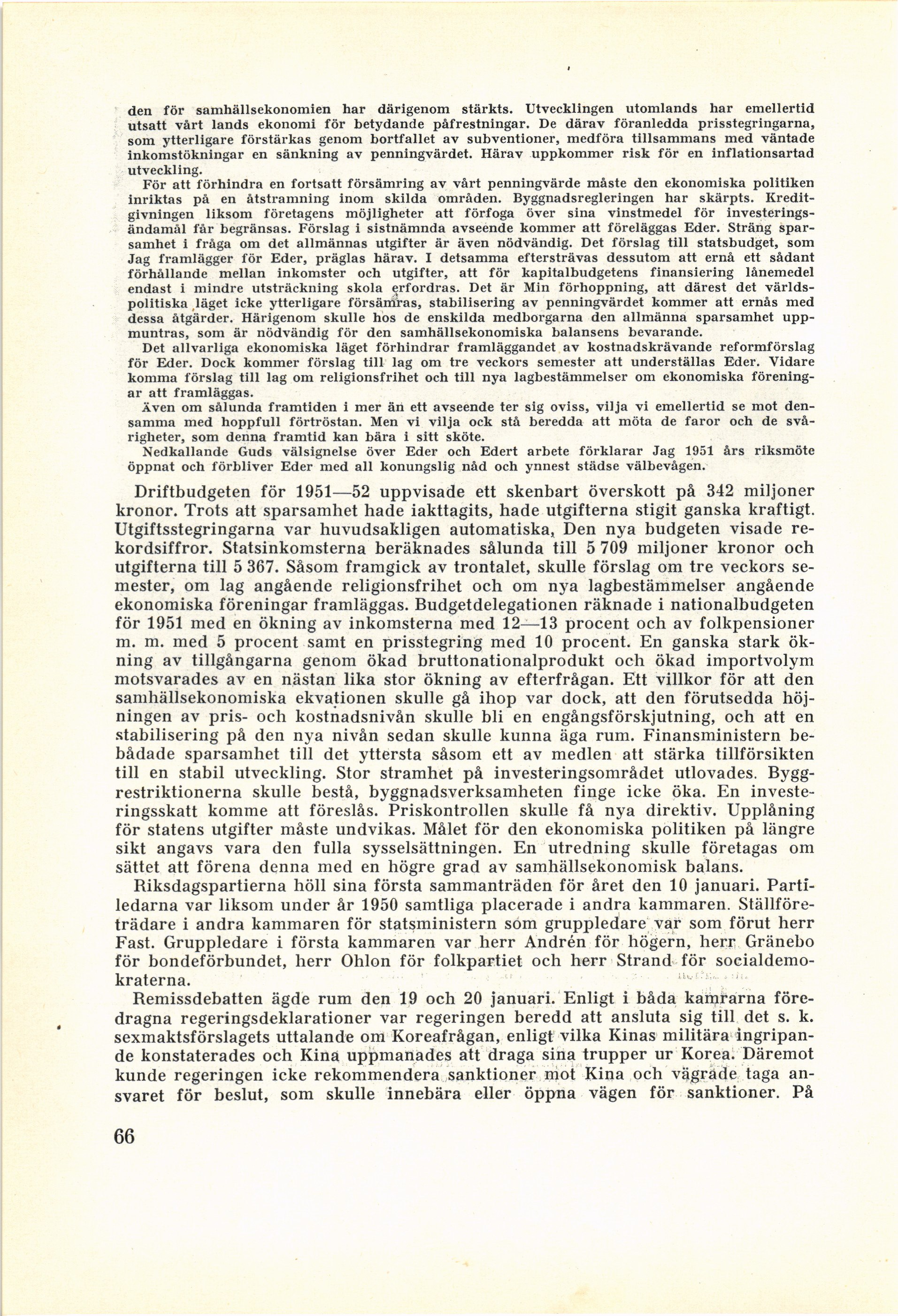 Nedkallande Guds välsignelse över Eder och Edert arbete förklarar Jag 1951 års riksmöte