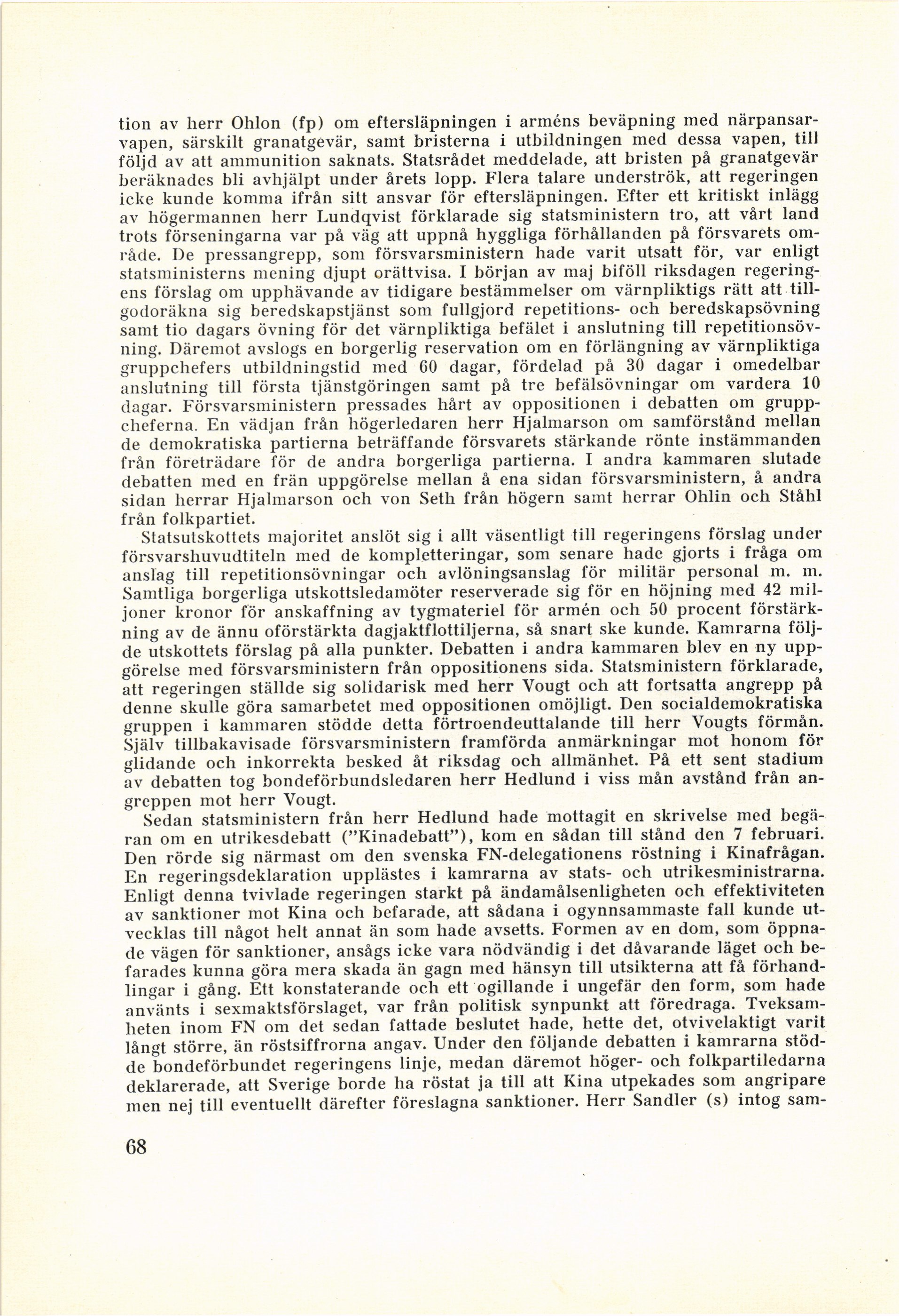 stödde bondeförbundet regeringens linje, medan däremot höger- och folkpartiledarna