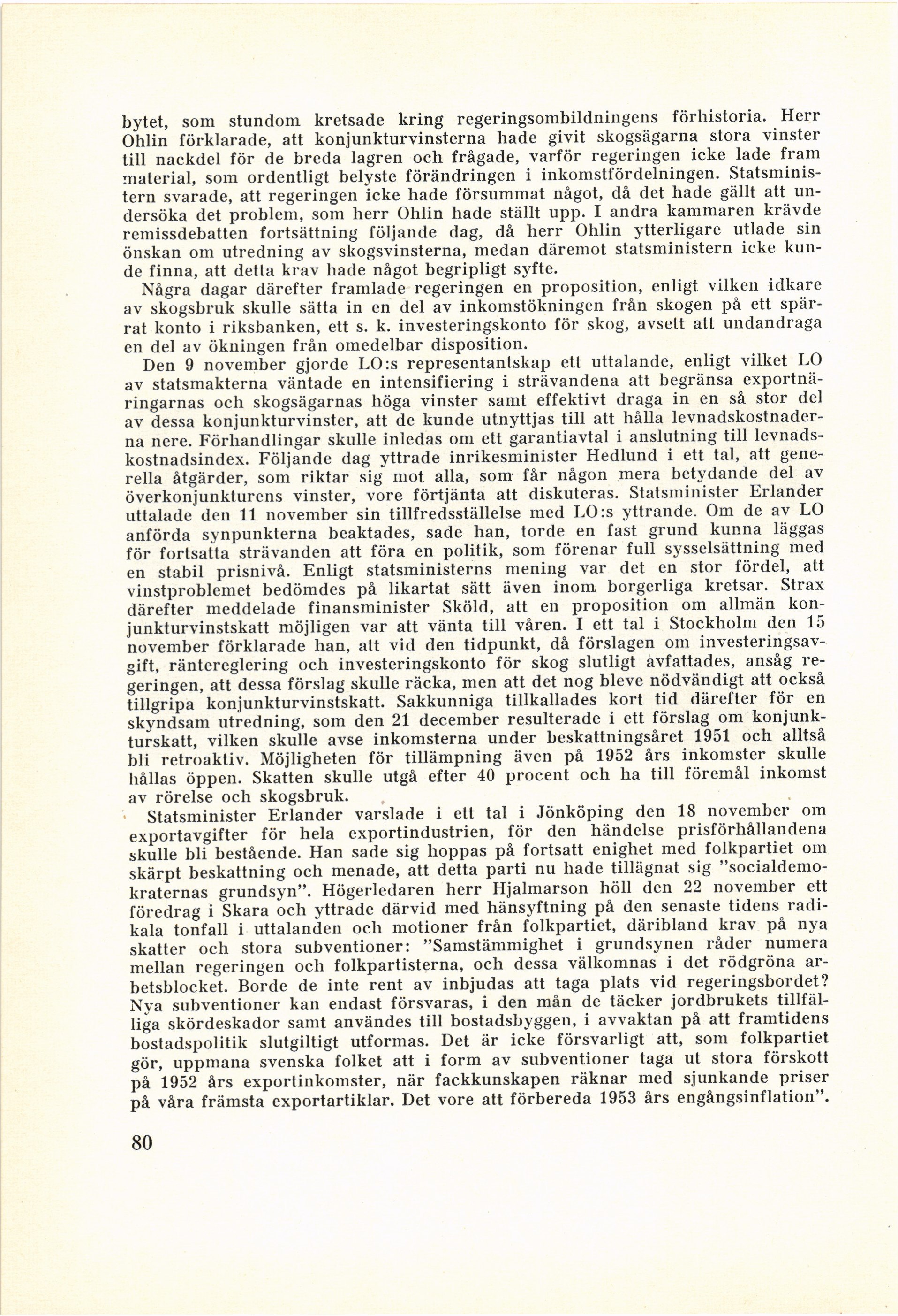 Ohlin förklarade, att konjunkturvinsterna hade givit skogsägarna stora vinster