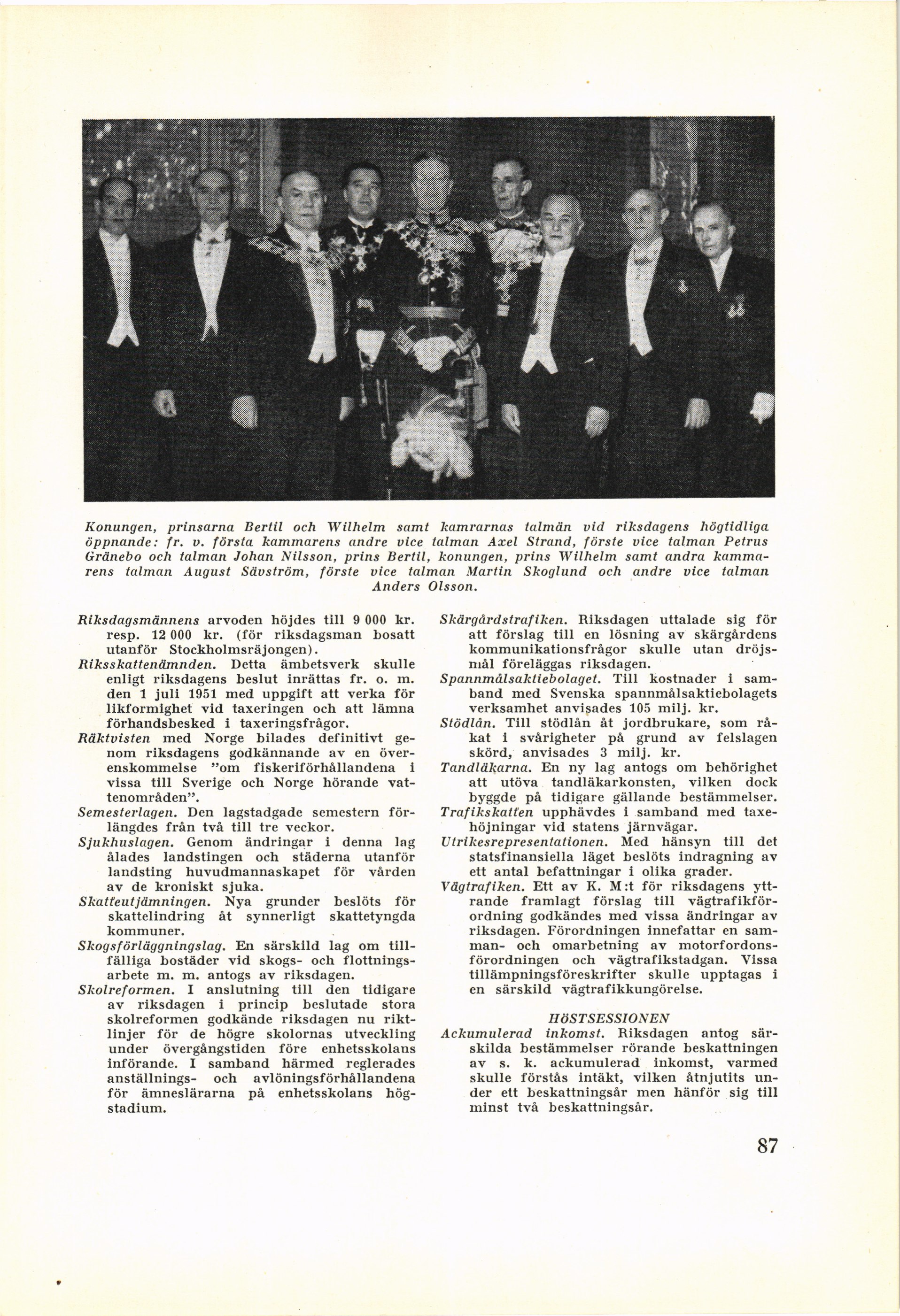 Gränebo och talman Johan Nilsson, prins Bertil, konungen, prins Wilhelm samt andra