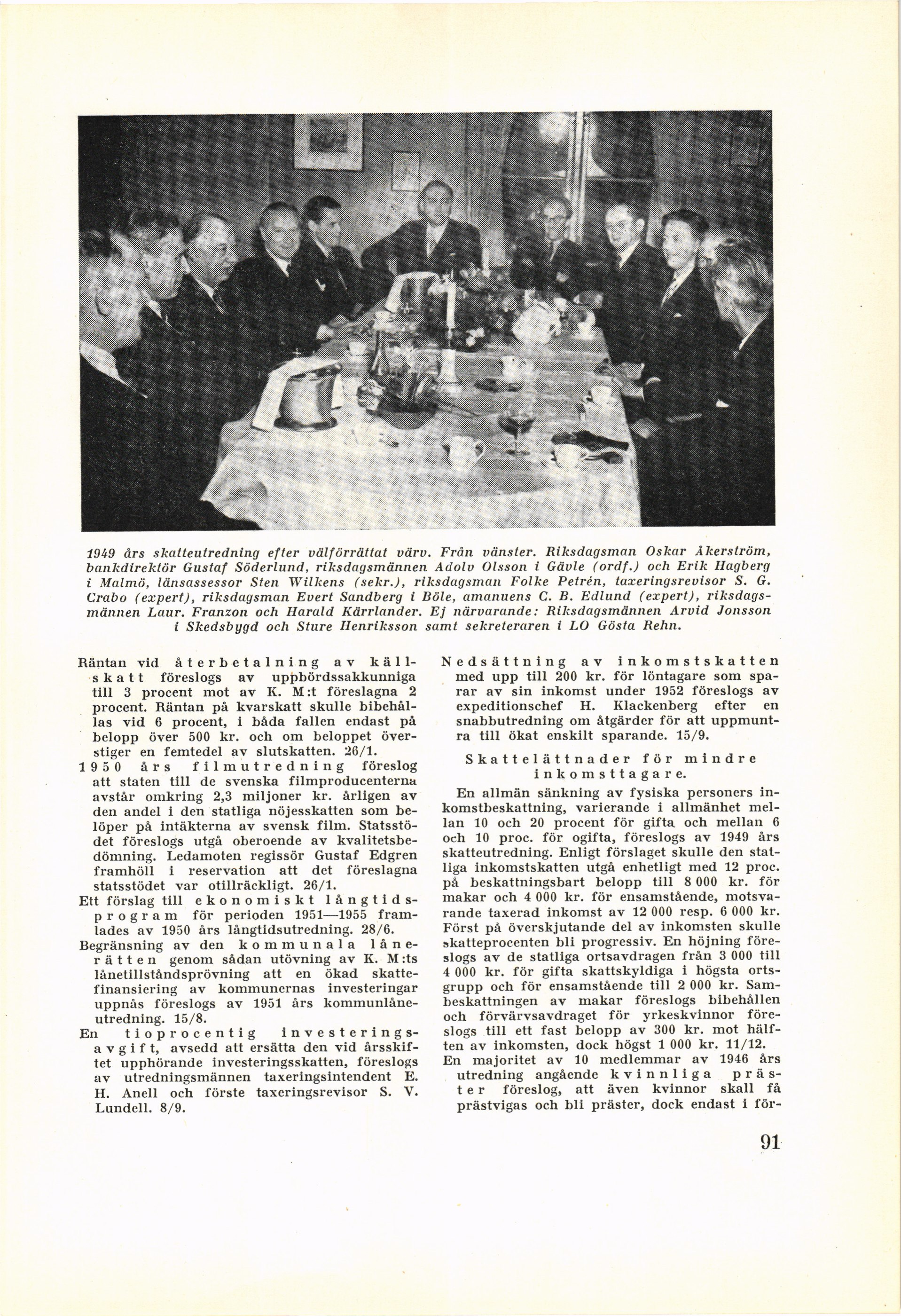 1949 års skatteutredning efter välförråttat värv. Från vänster. Riksdagsman Oskar Åkerström,