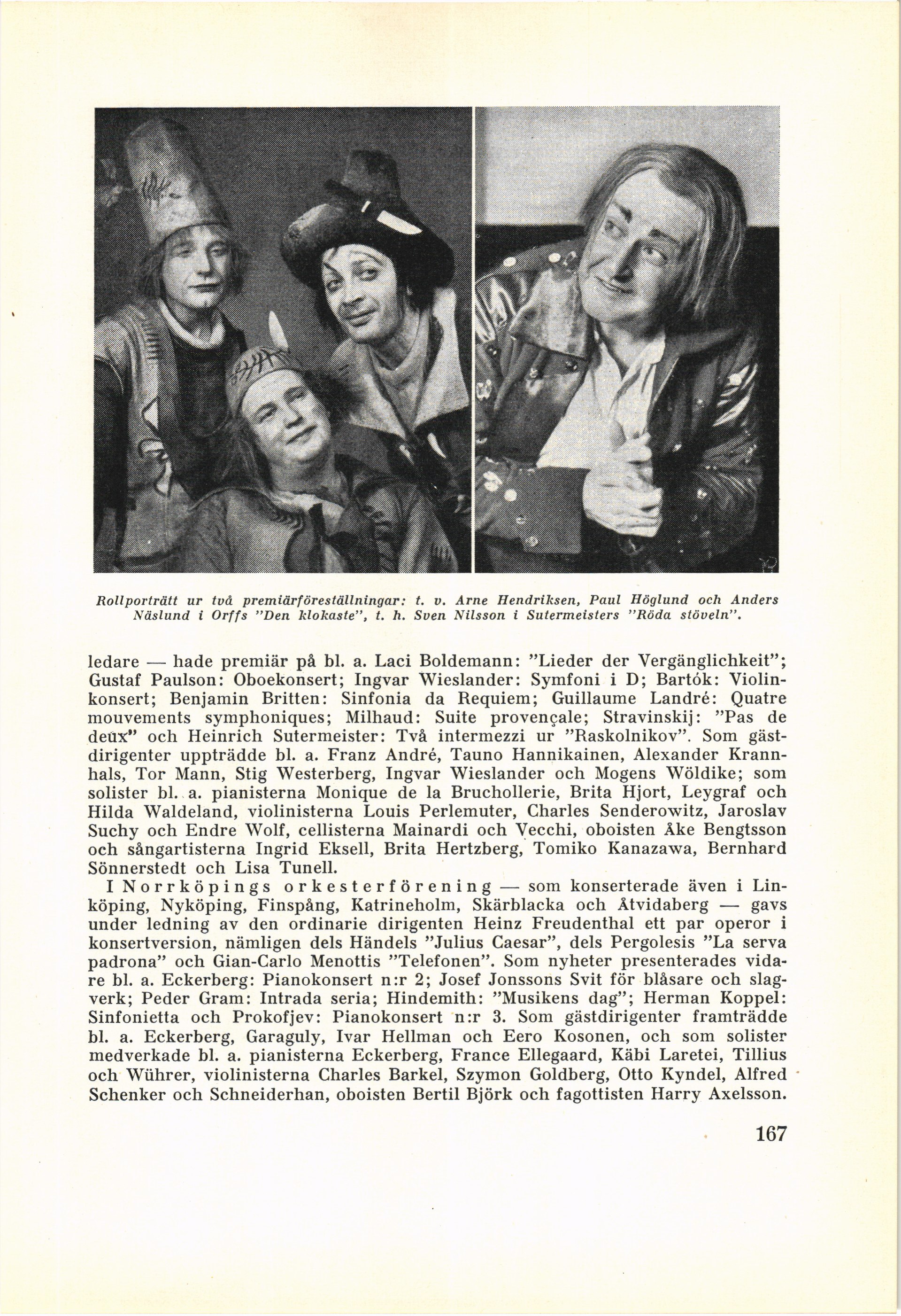 Rollporträtt ur två premiärföreställningar: t. v. Arne Hendriksen, Paul Höglund och Anders