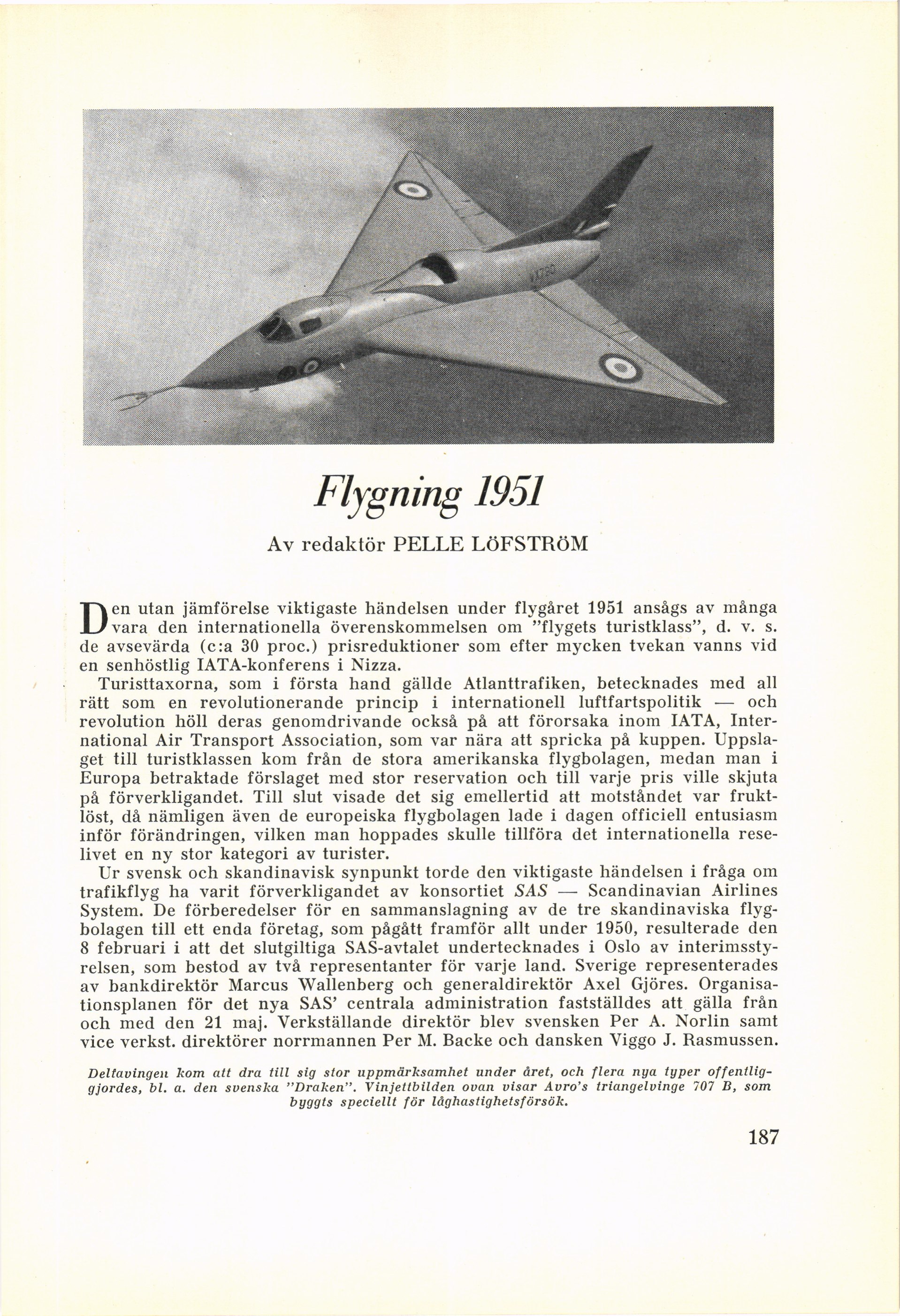offentliggjordes, bl. a. den svenska ”Draken”. Vinjettbilden ovan visar Avro’s triangelvinge 707 B, som