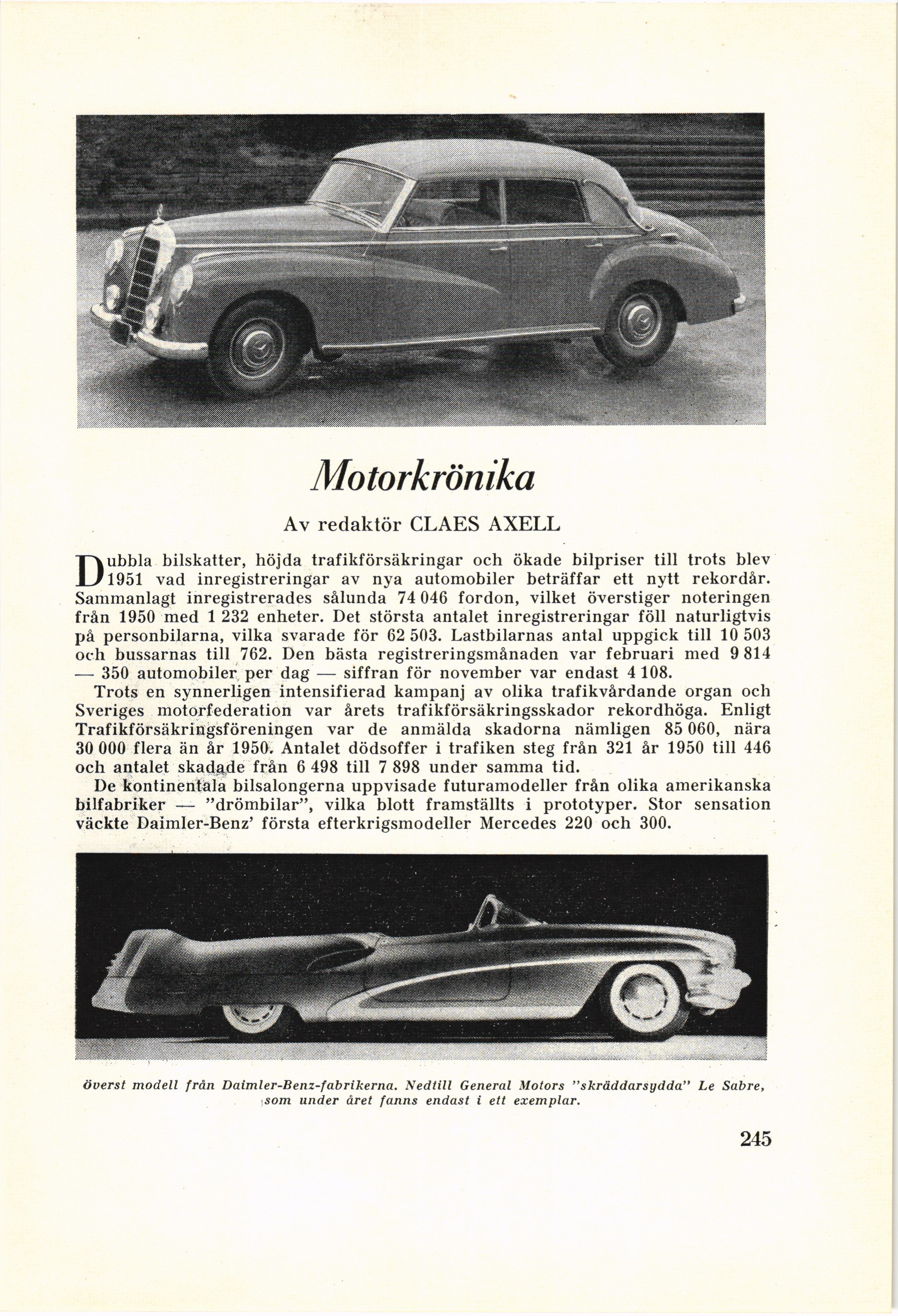 överst modell från. Daimler-Benz-fabrikerna. Nedtill General Motors ”skräddarsydda” Le Sabre,