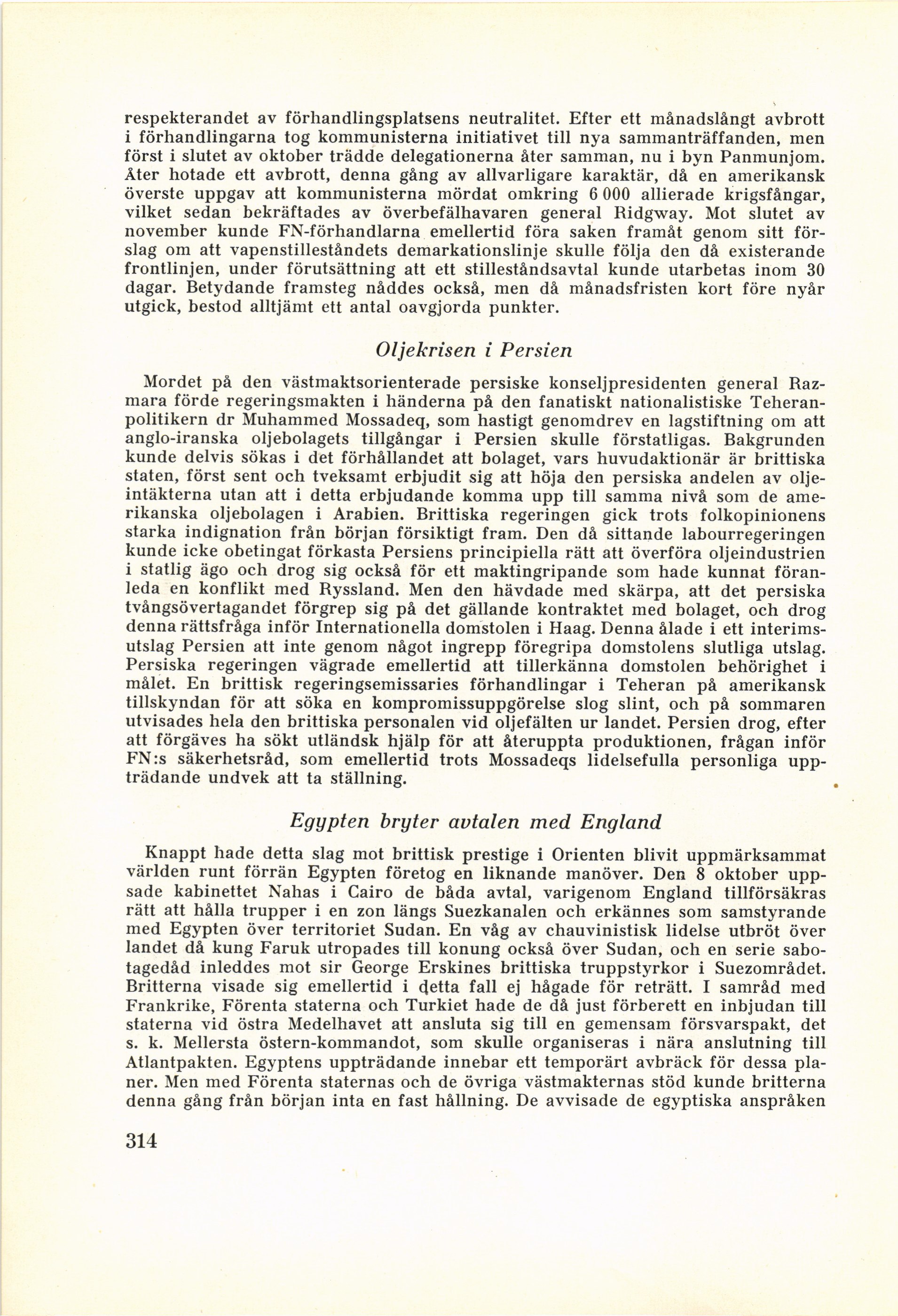 Full resolution (JPEG) - On this page / på denna sida - Utrikespolitisk översikt. Av redaktör T. G. Wickbom - General MacArthurs fall — förhandlingar i Korea - Oljekrisen i Persien - Egypten bryter avtalen med England