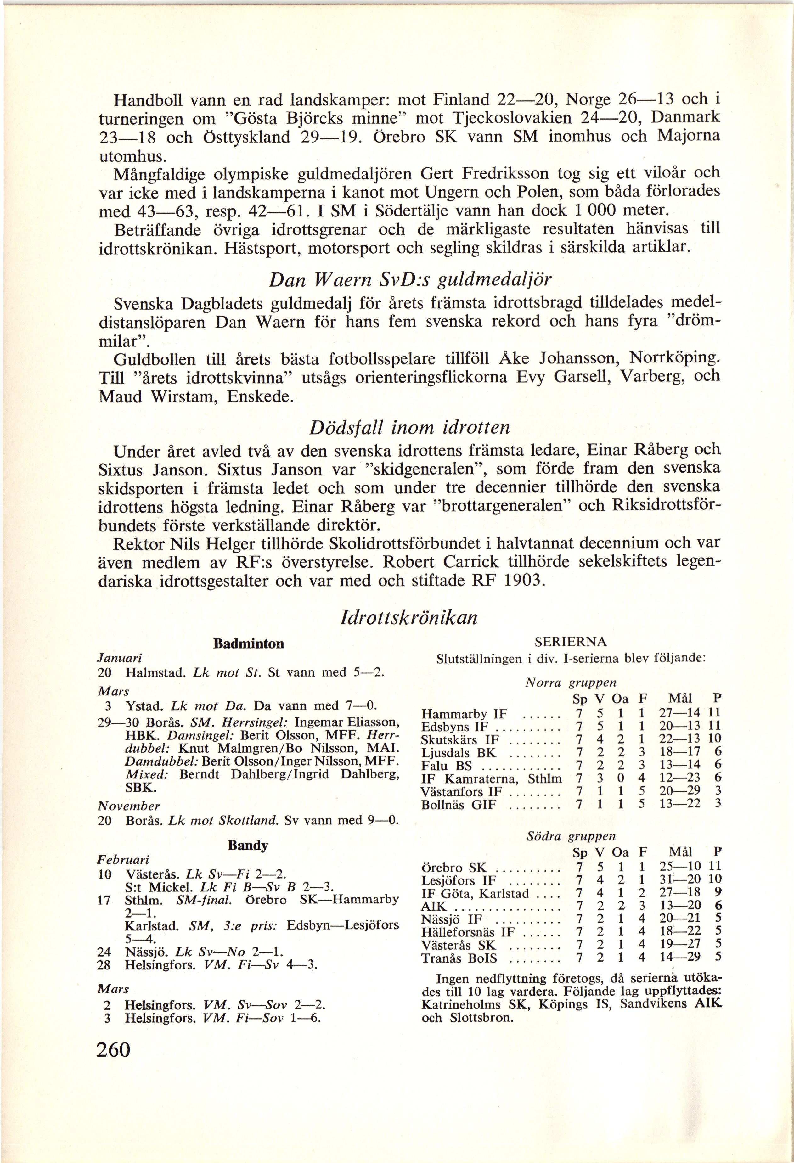 idrottskrönikan. Hästsport, motorsport och segling skildras i särskilda artiklar.