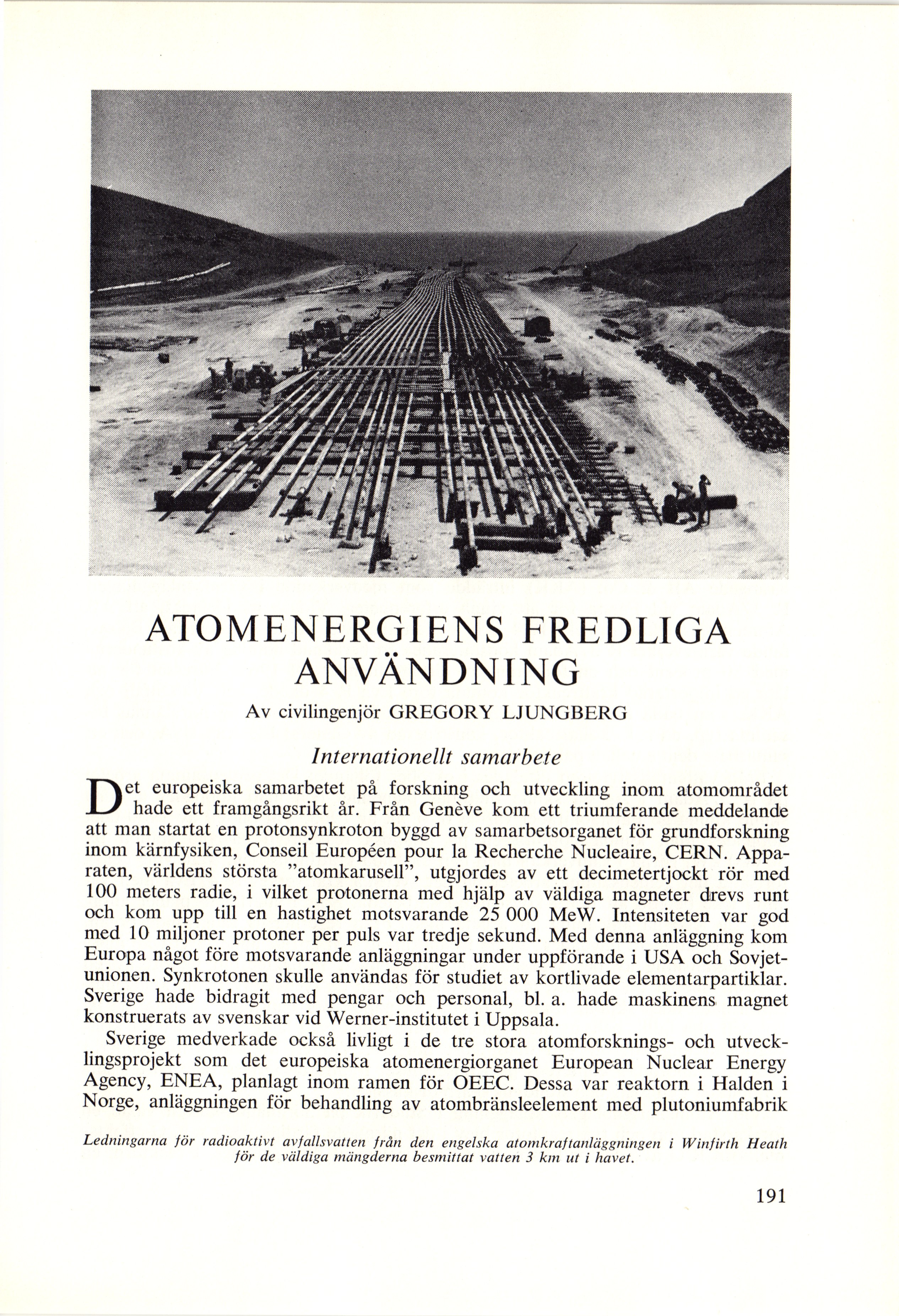 - Atomenergiens fredliga användning. Av civilingenjör Gregory Ljungberg