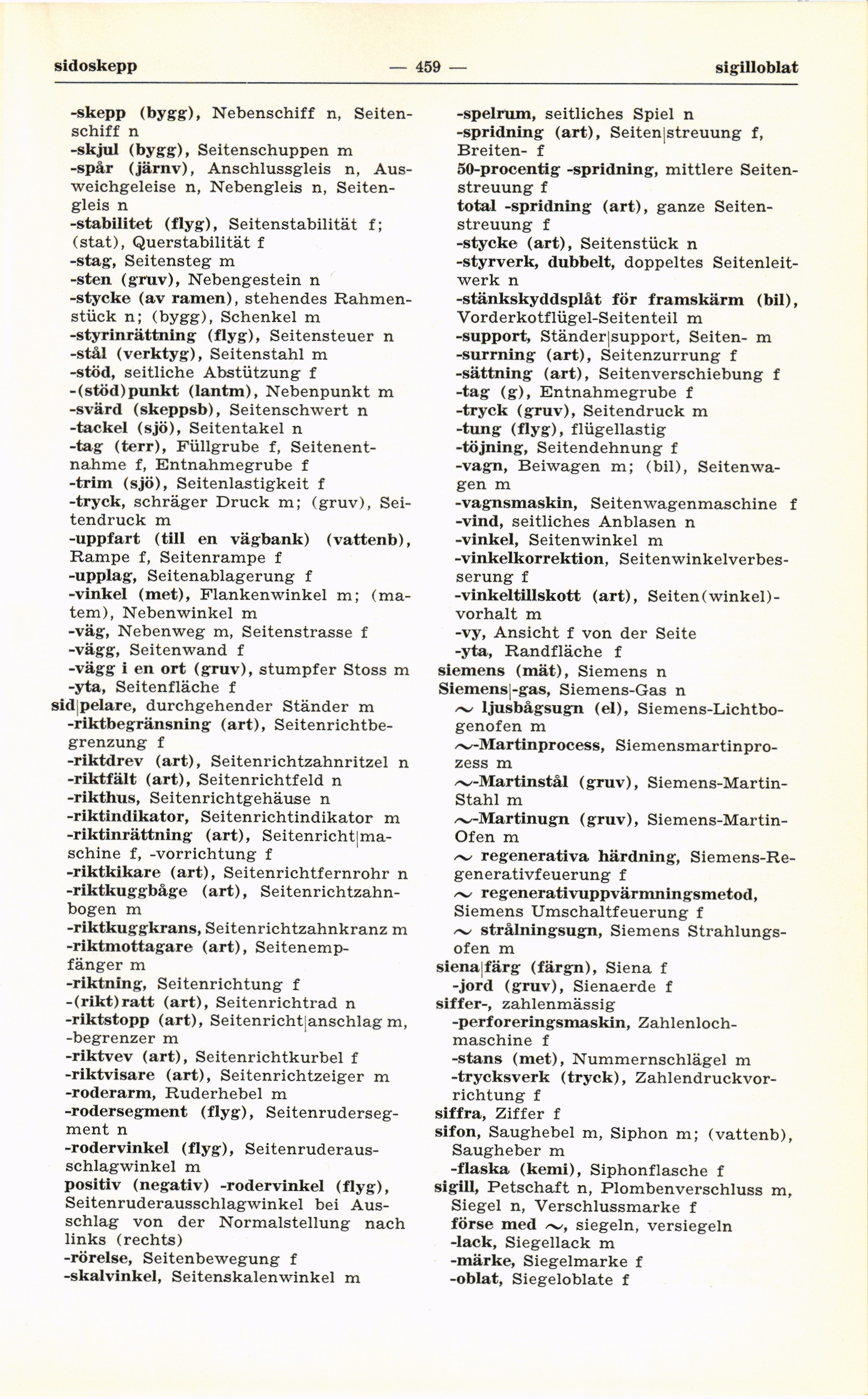 -riktning, Seitenrichtung f