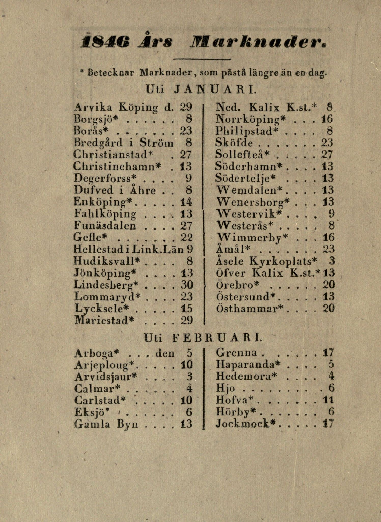 Jönköping* . . . . 13 Öfver Kalix K.st.* 13