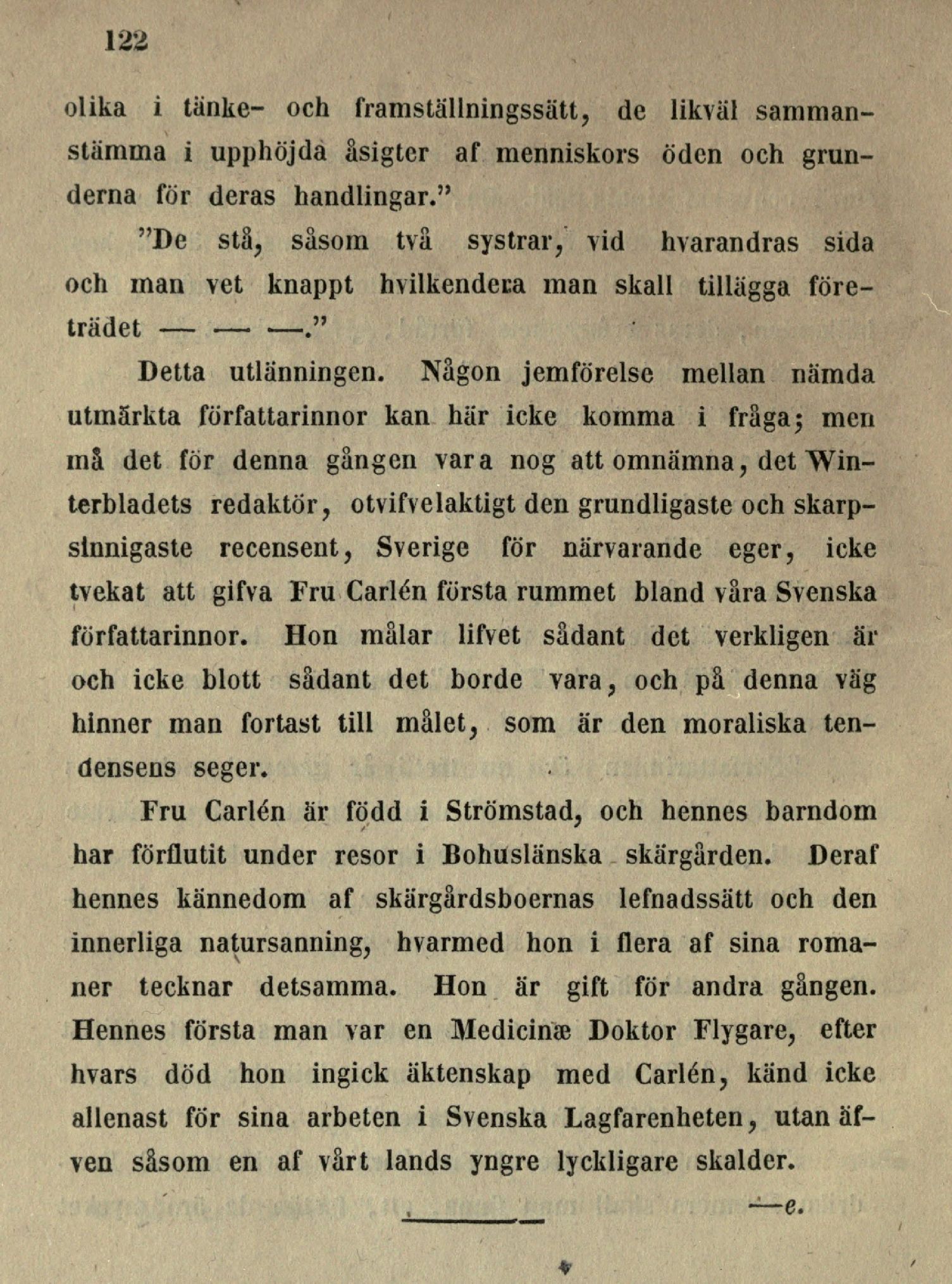 tvekat att gifva Fru Carlén första rummet bland våra Svenska