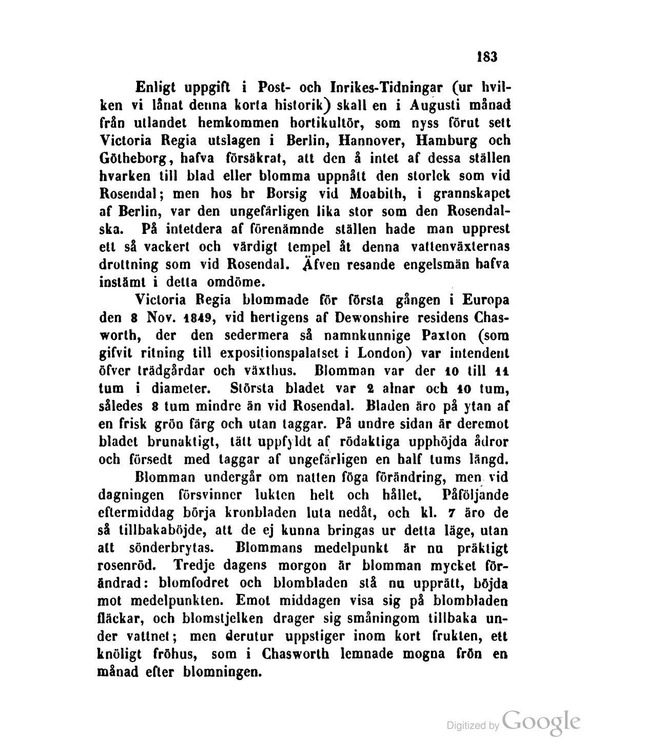 öfver trädgårdar och växthus. Blomman var der 10 till 11
