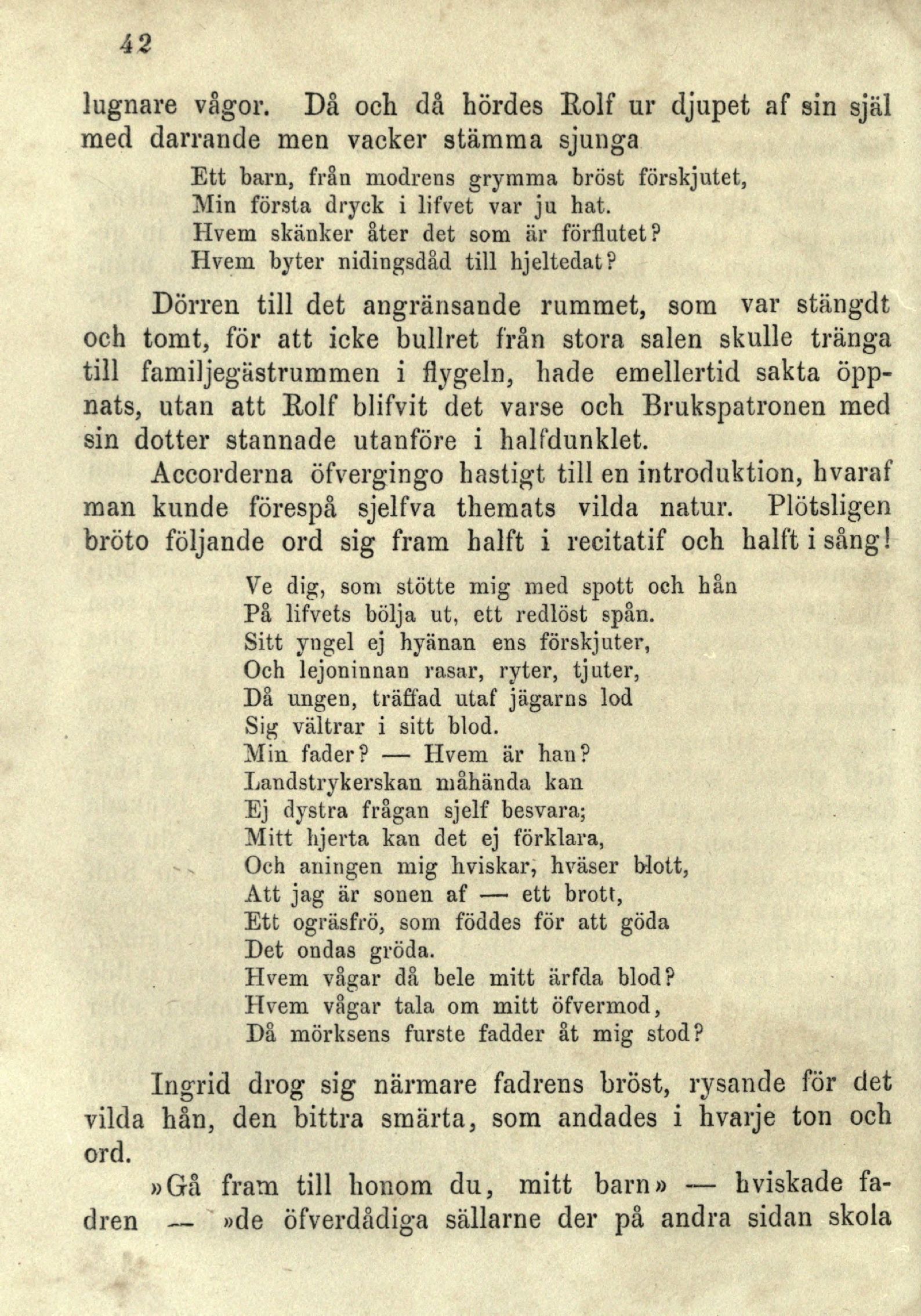 lugnare vågor. Då och då hördes Rolf ur djupet af sin själ