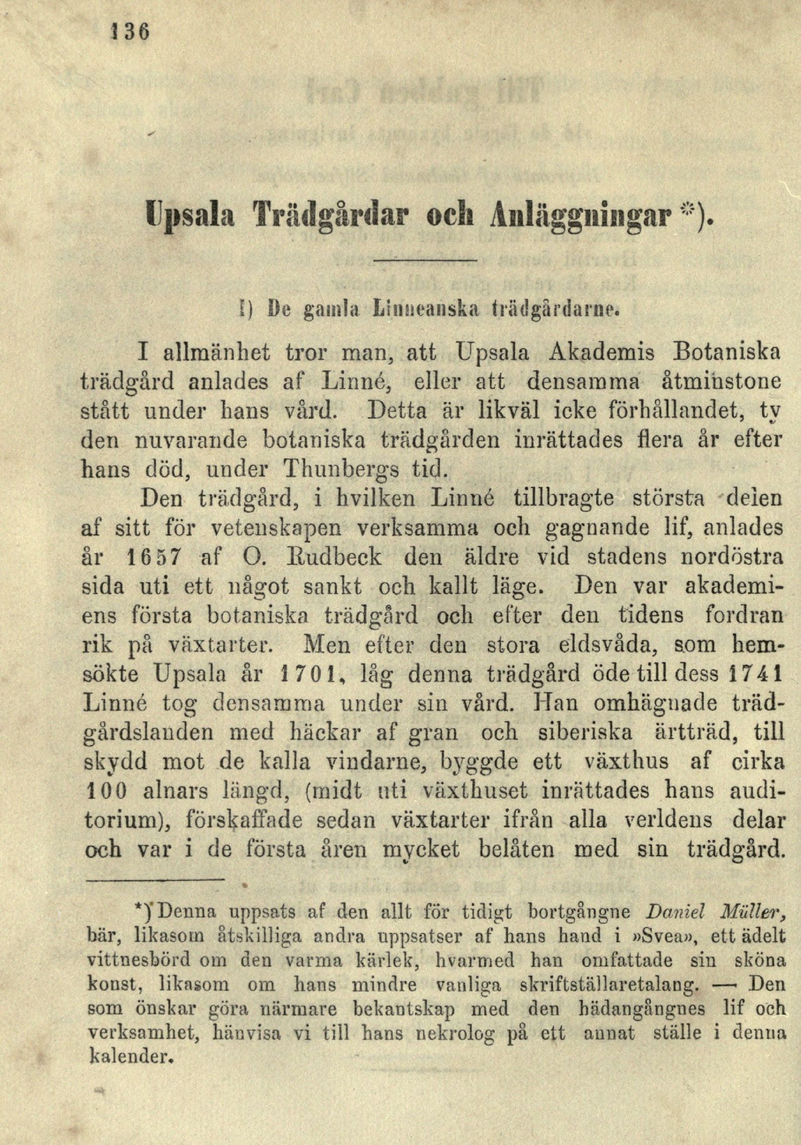 - Upsala Trädgårdar och anläggningar, af Daniel Müller (med 2:ne illustr.)