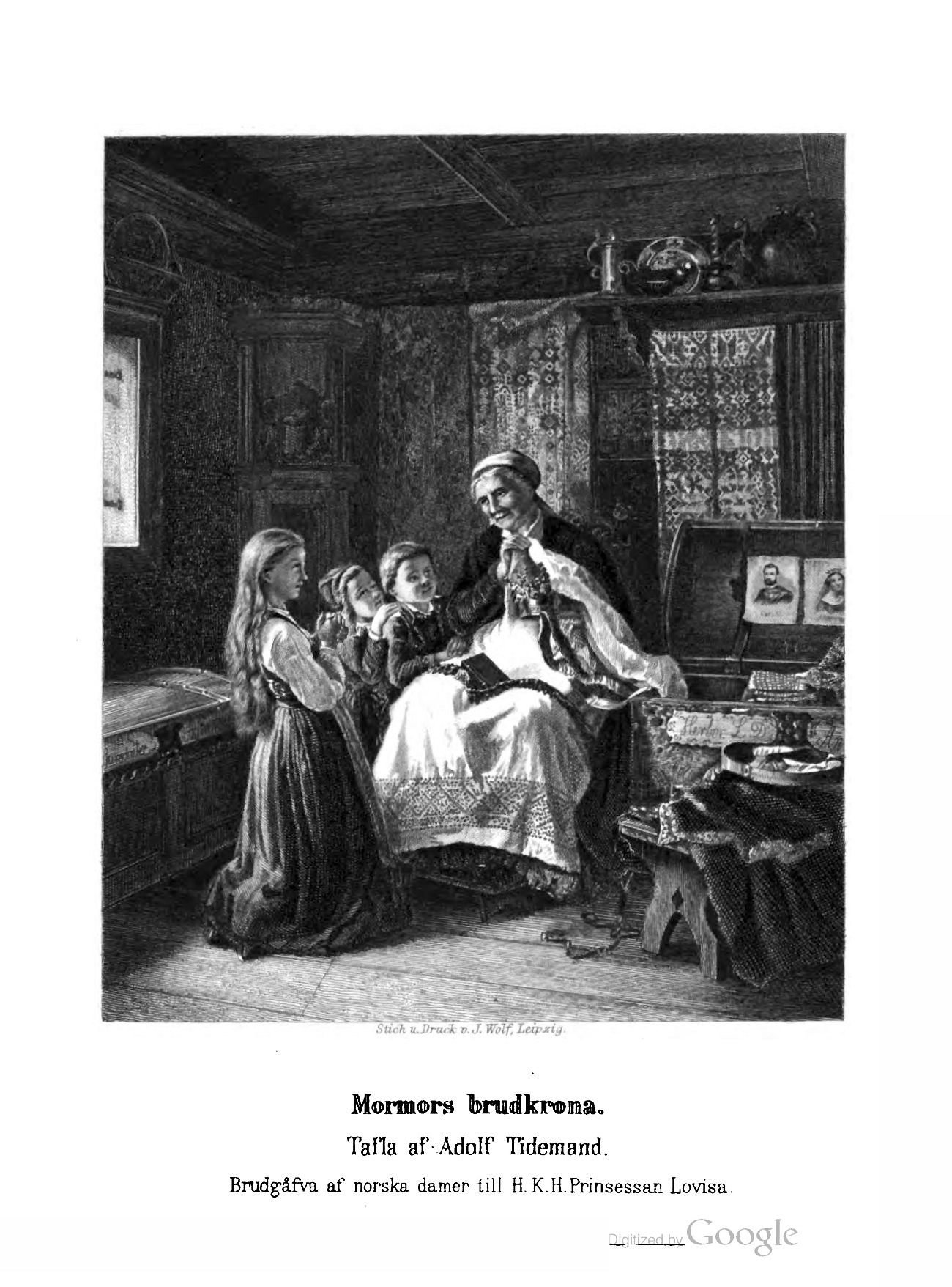 Full resolution (JPEG) - On this page / på denna sida - Mormors brudkrona. Poem af Wilhelmina. Med stålstick efter Tidemands tafla