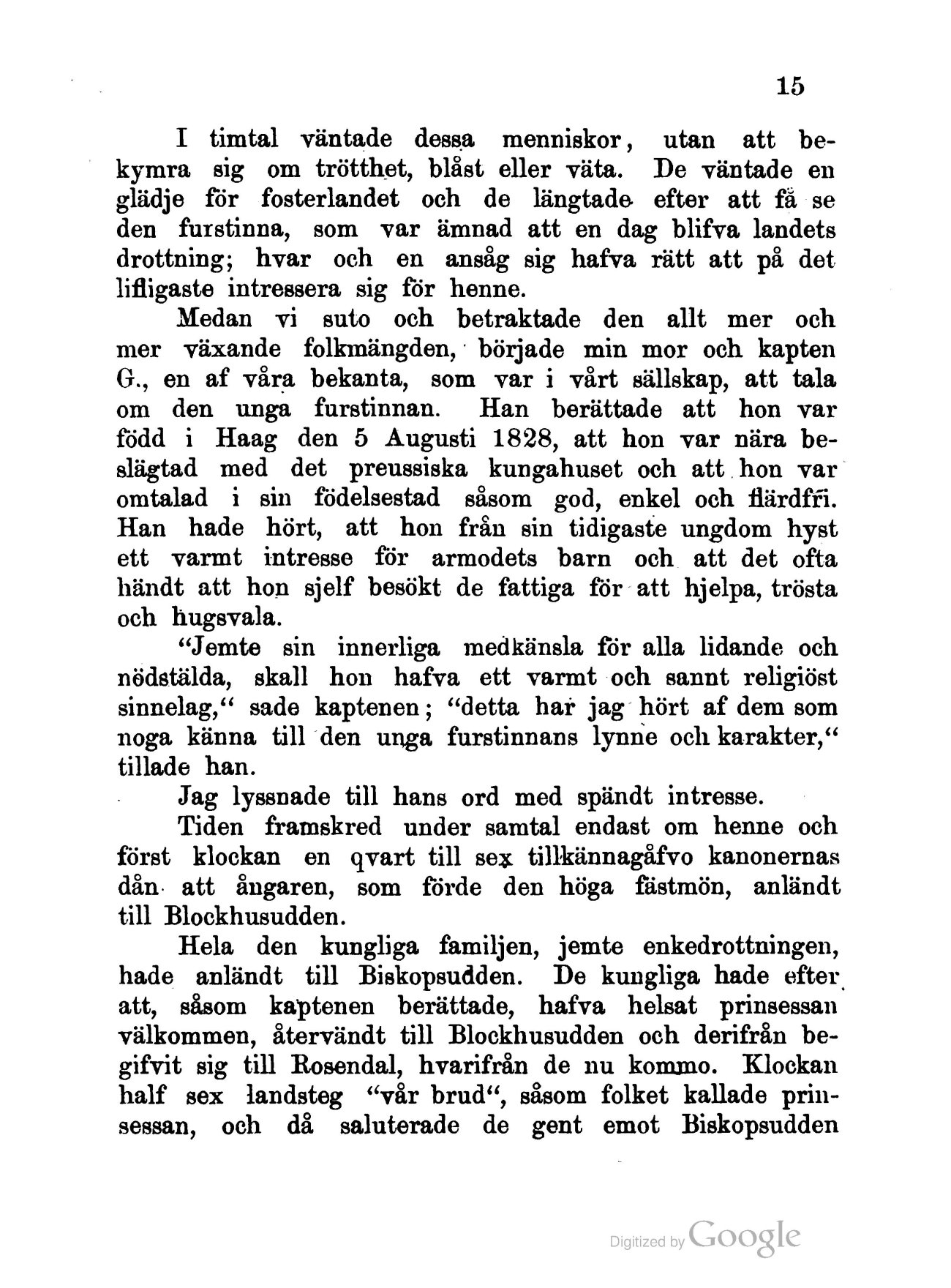 att, såsom kaptenen berättade, hafva helsat prinsessan
