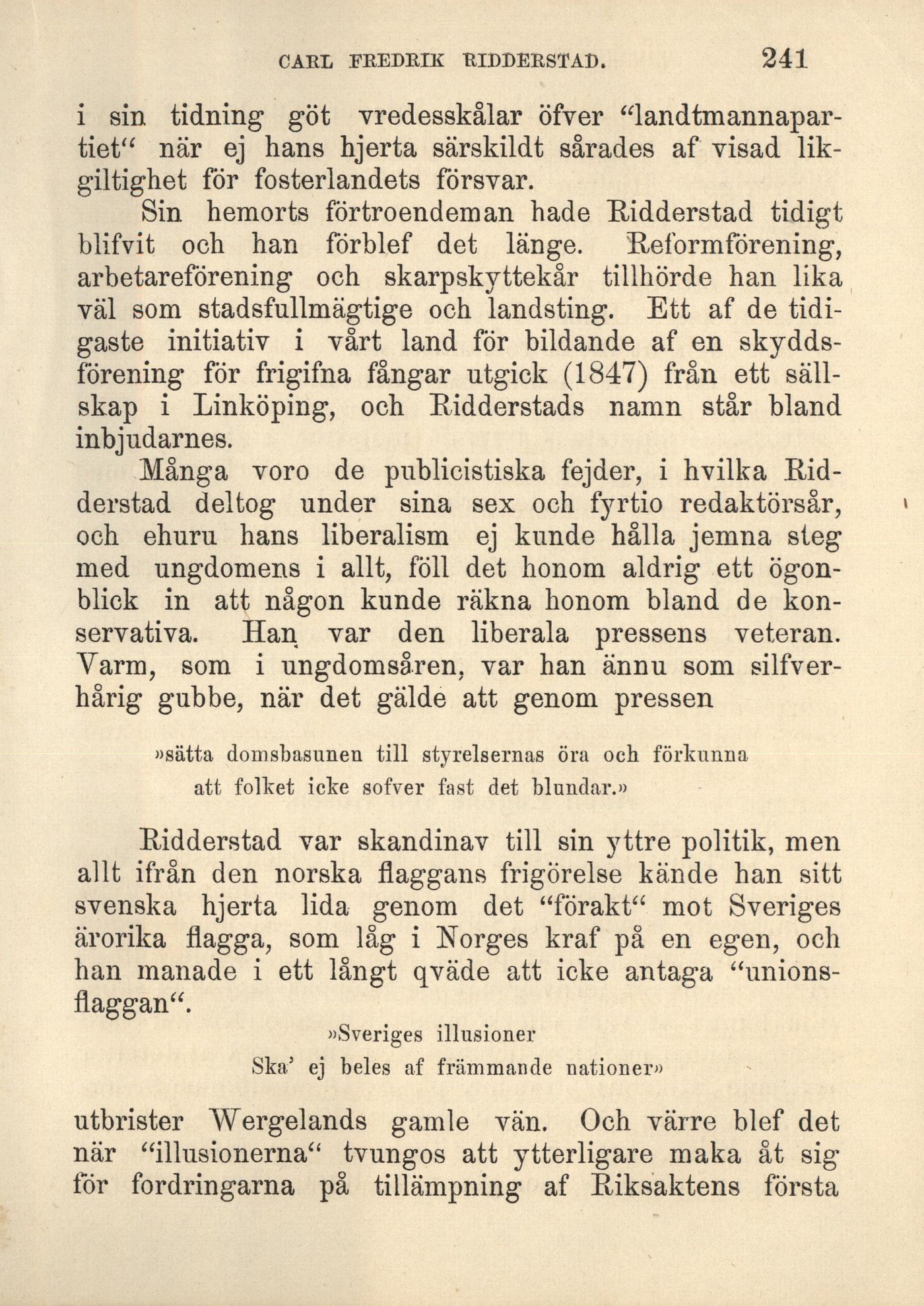 och ehuru hans liberalism ej kunde hålla jemna steg