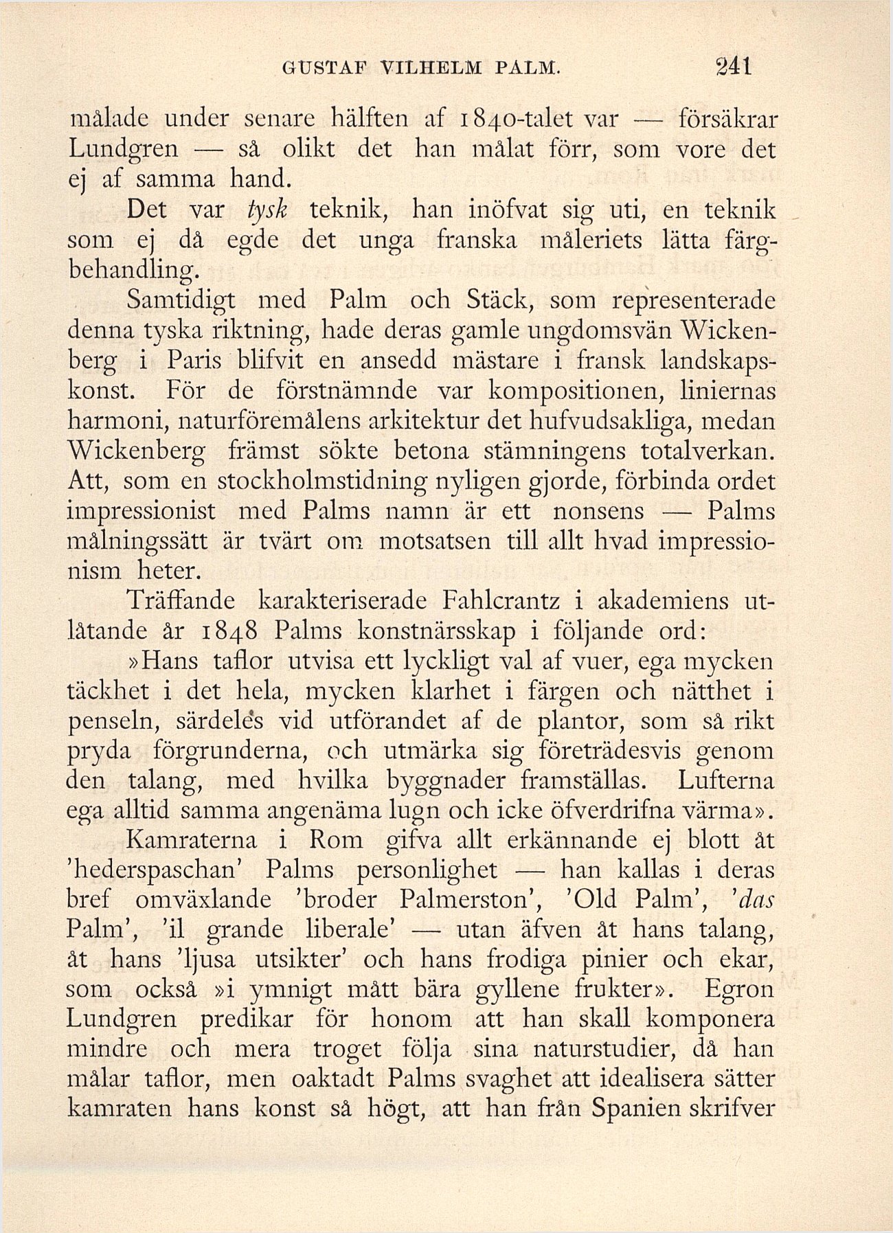 utlåtande år 1848 Palms konstnärsskap i följande ord: