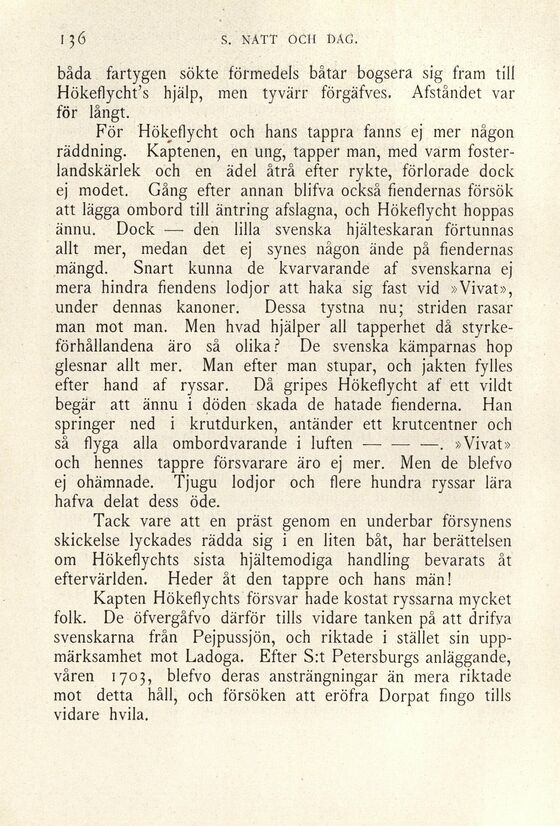 om Hökeflychts sista hjältemodiga handling bevarats åt