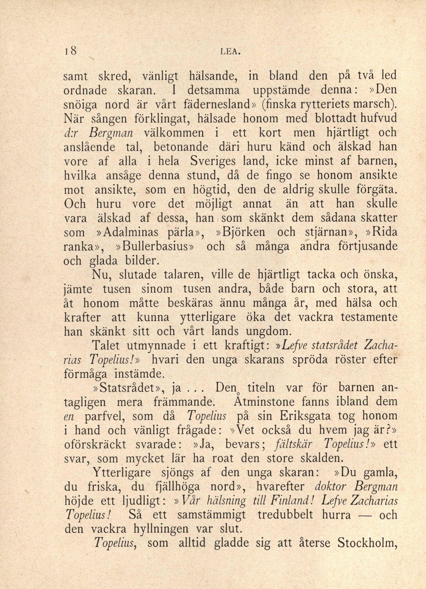 Zacharias Topelius!» hvari den unga skarans spröda röster efter
