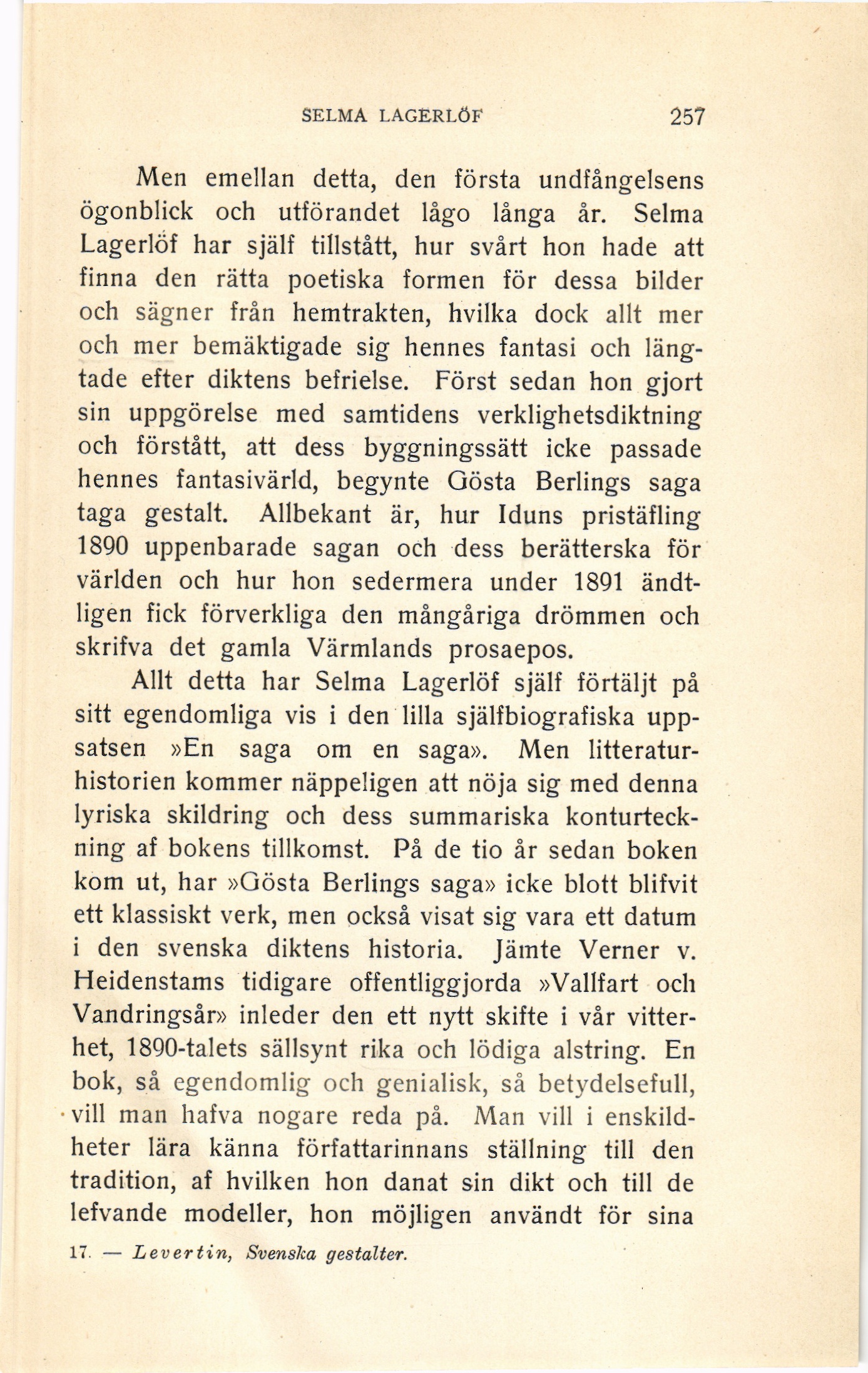 kom ut, har »Gösta Berlings saga» icke blott blifvit