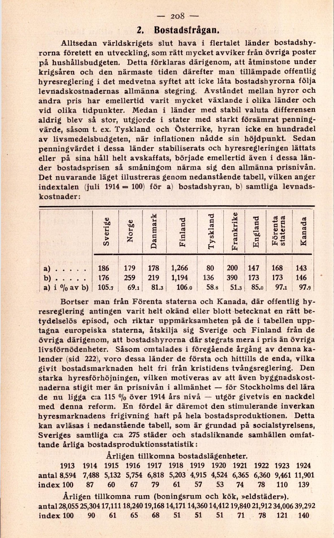 indextalen (juli 1914 — 100) för a) bostadshyran, b) samtliga